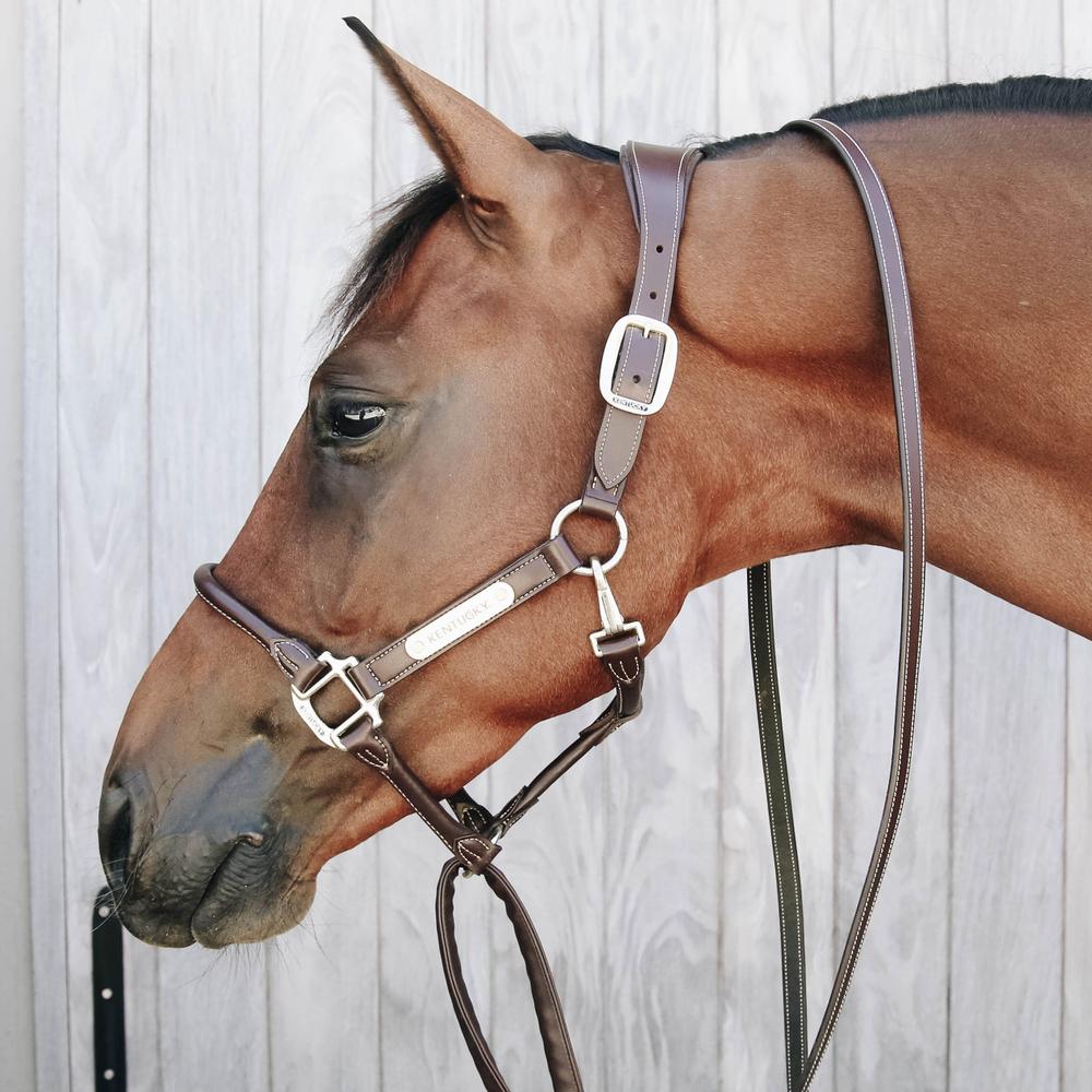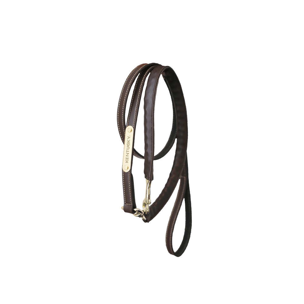 Die Kentucky Führleine Leather Covered Chain Lead ist aus einem Lederimitat (100% tierfreundlich). Unser besonderes Kunstleder nimmt kein Wasser oder Dreck auf, bricht nicht oder verändert die Farbe. Es ist flexibler als echtes Leder und ist deswegen einfacher in der Handhabung. Die Führleine liegt sehr gut in der Hand und hat am Ende noch eine zusätzliche Schlaufe. Die komplette Länge der Führleine ist 270cm. Die Kette hat eine Länge von 60cm und ist mit einem Lederimitat überzogen. Das sieht nicht nur besser aus, sondern gibt dem Pferd ein besseres Gefühl. Der Karabiner ist in gold und kann perfekt mit all unseren Halfter kombiniert werden. Die Führleine Leather Covered Chain kann einfach gesäubert werden, mit unserem Tack Cleaner. Der Tack Cleaner wurde speziell entwickelt, um das Kunstleder perfekt zu reinigen – wirklich sehr einfach und schnell. (Beachte: Das Kunstleder darf nicht mit Glycerin gereinigt werden).