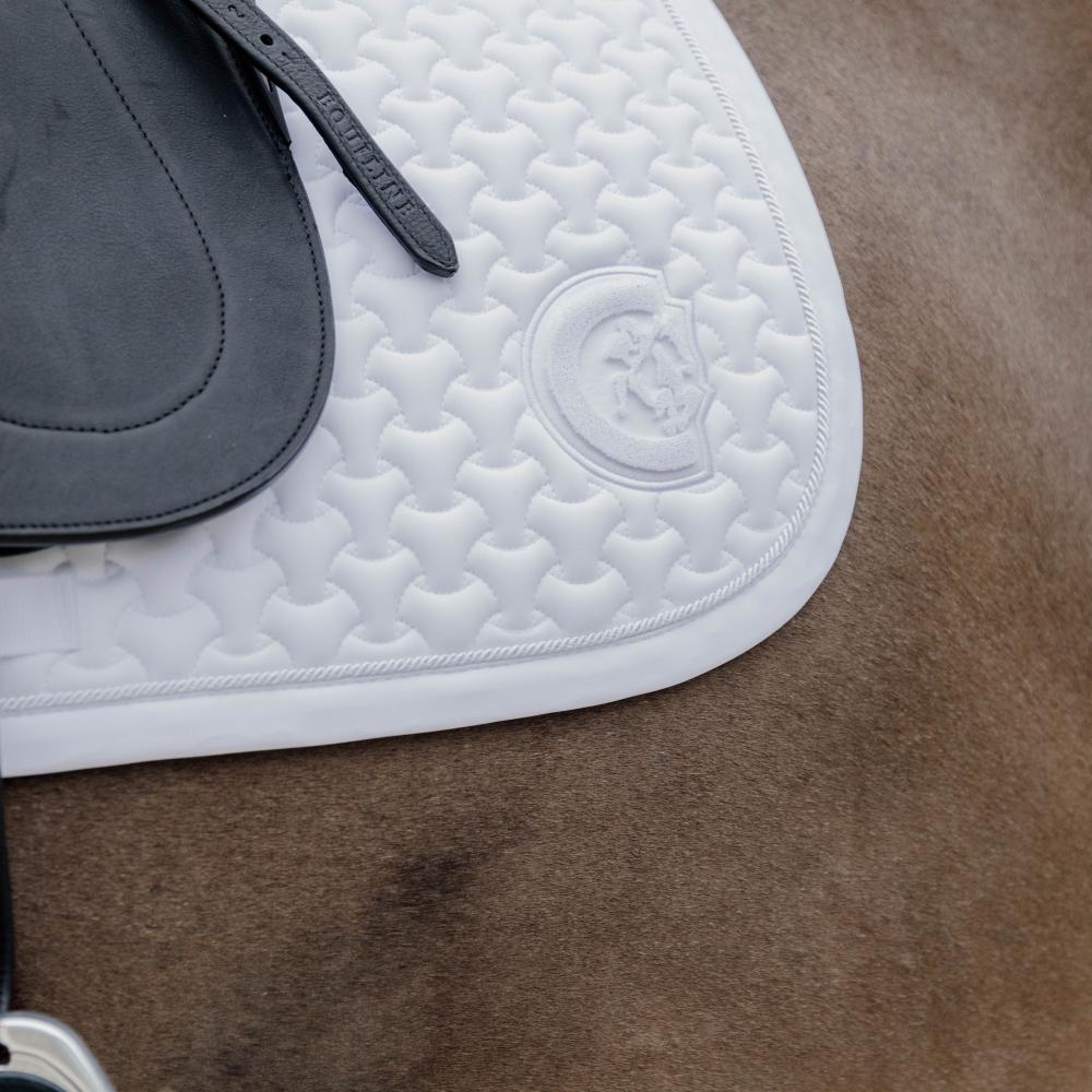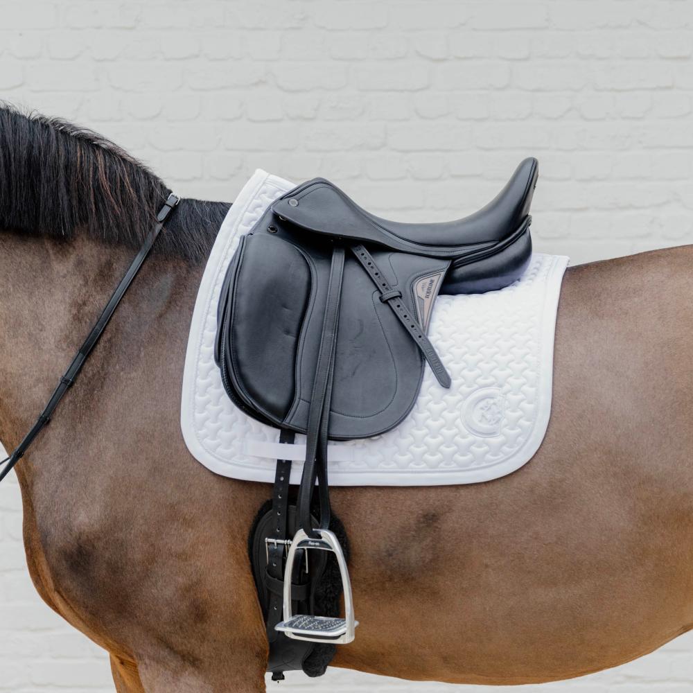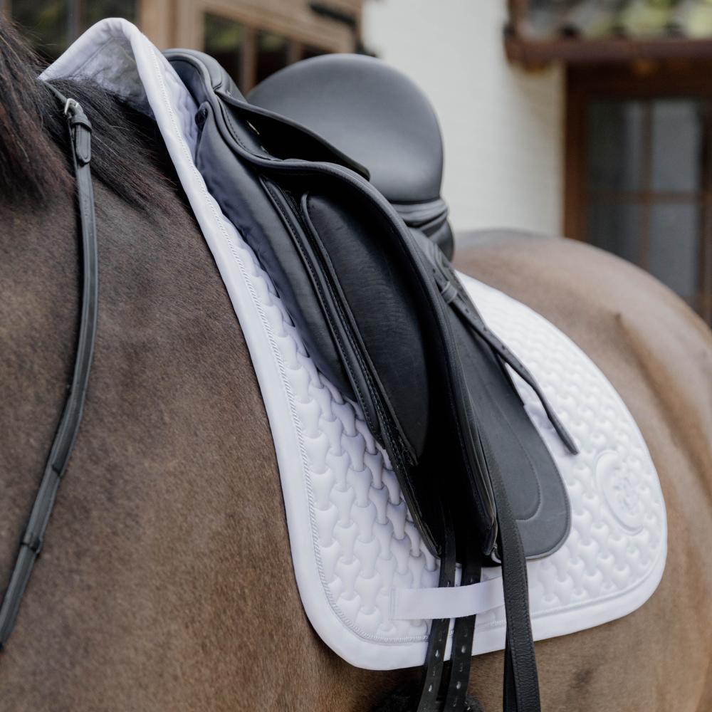 Die Schabracke hat eine einzigartige Steppung. Das Futter der Schabracke besteht aus einem Baumwoll- und Polyestergemisch, das Schweiß leicht absorbiert und sehr atmungsaktiv ist.