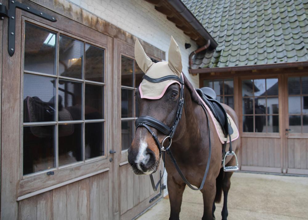 Das Material an den Ohren ist elastisch und eng anliegend. Das verlängerte Nackenstück verhindert ein Verrutschen während des Reitens.