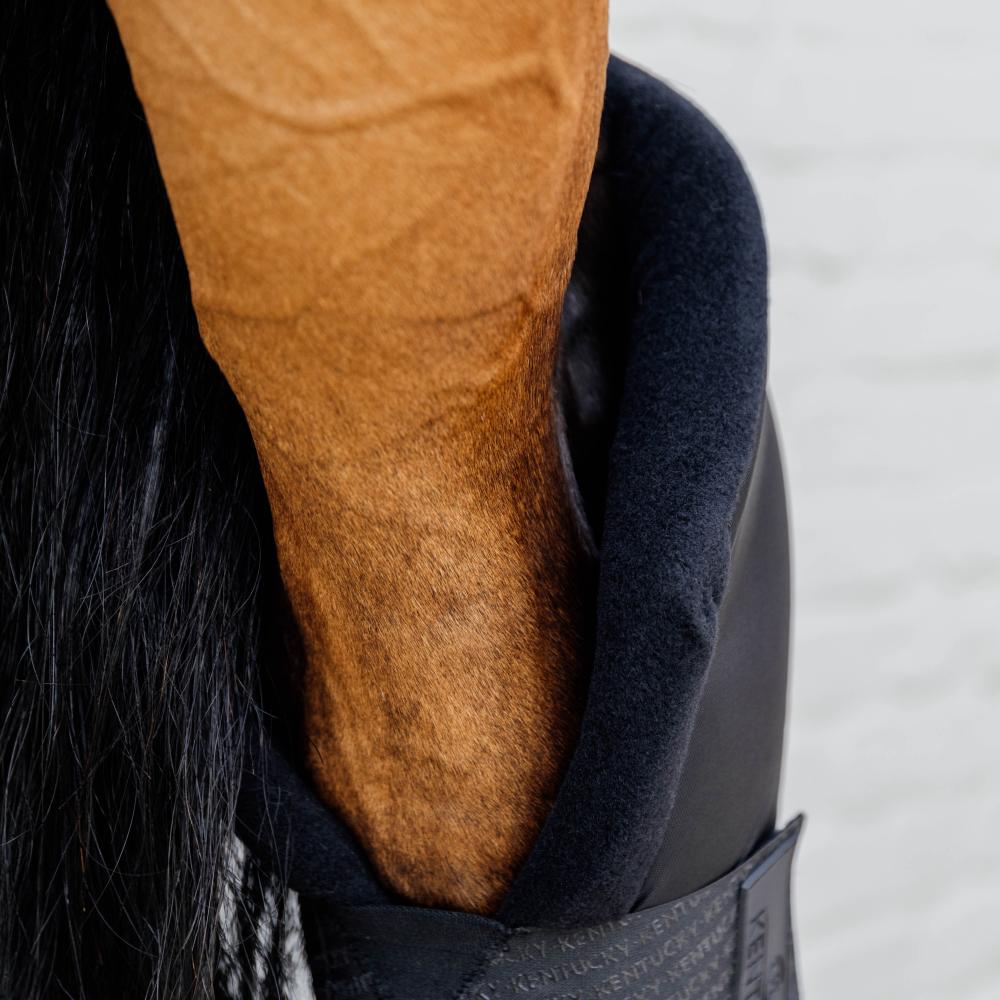 Die Stallgamaschen reichen über das Sprunggelenk und sind daher gerade für unruhige Pferde empfehlenswert, um Verletzungen vorzubeugen. Sie umschließen das Röhrbein vollständig und sind ergonomisch geformt. Das gewährleistet eine perfekte Passform, besonders beim Umschließen des Fesselkopfes. So sitzt alles sicher, ohne zu verrutschen.