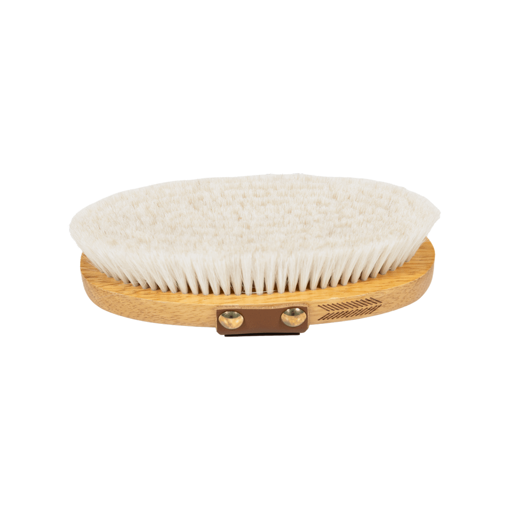 Diese Bürste aus echtem Ziegenhaar bietet außergewöhnliche Weichheit und Effektivität, damit dein Pferd jede Putzeinheit genießen kann.