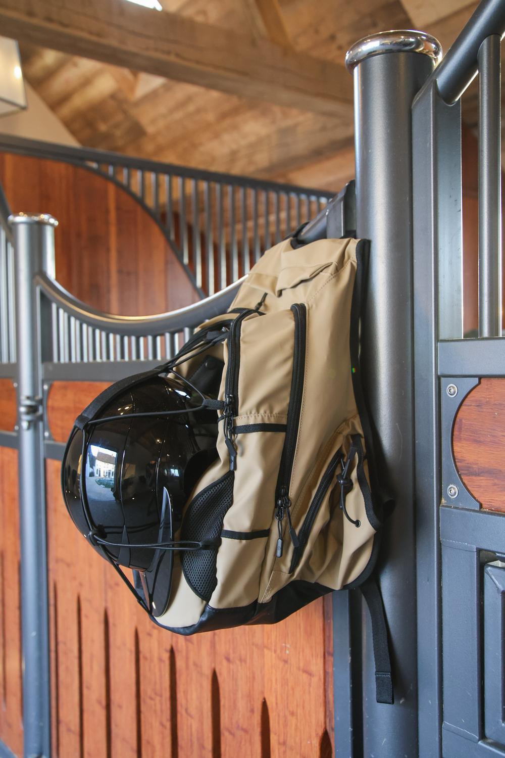 Gefertigt aus robusten und dennoch leichten Materialien, ist dieser Rucksack darauf ausgelegt, den Anforderungen des Reitsports standzuhalten. Das hochwertige Lederdetail verleiht eine edle Note, während die verstärkte Basis zusätzlichen Schutz gegen täglichen Verschleiß bietet. Erhältlich in Schwarz, Marineblau und Beige.