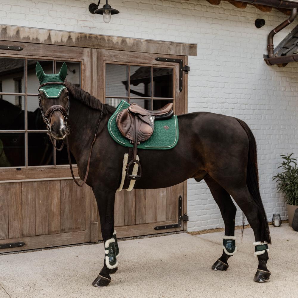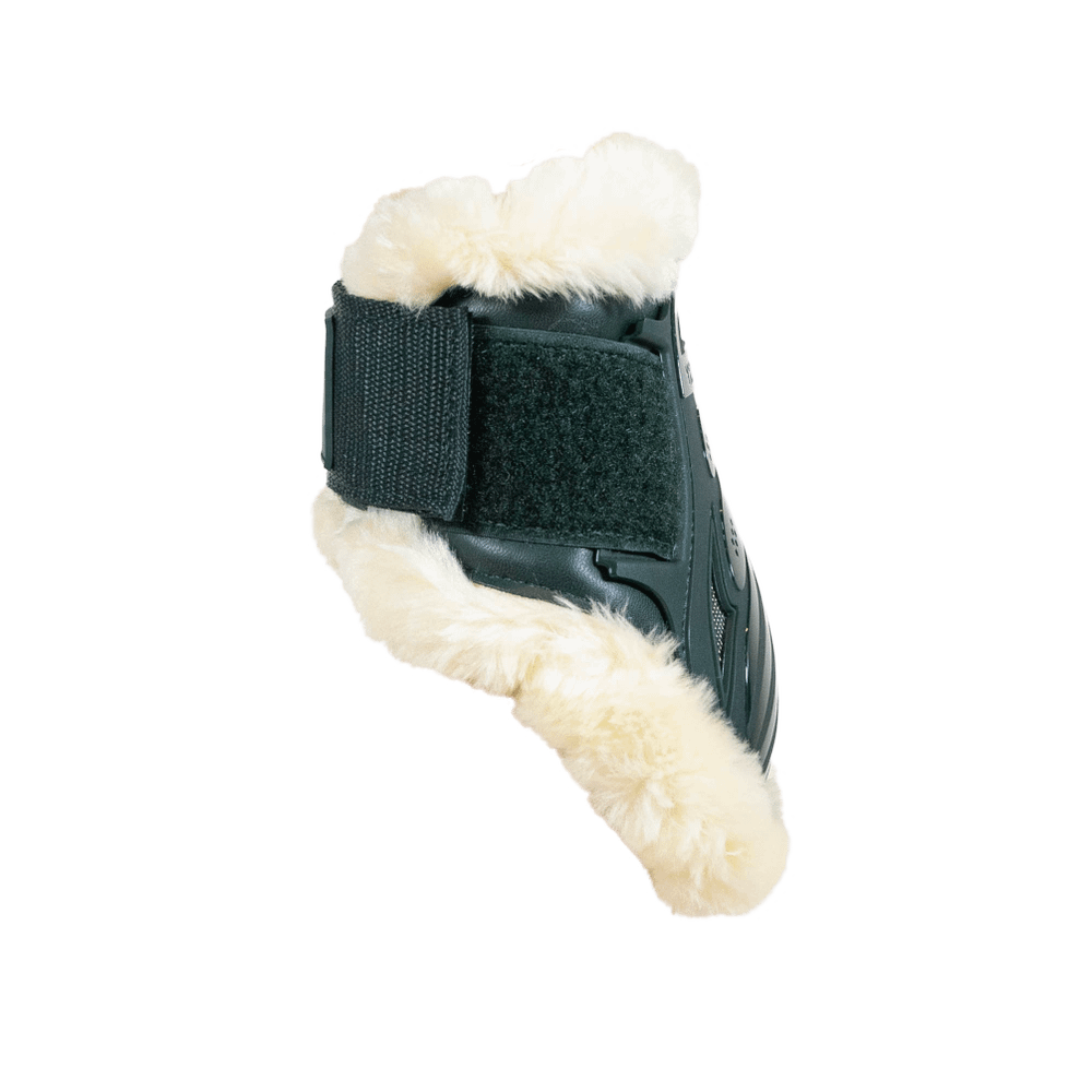 Die Gamaschen für junge Pferde aus veganem Schaffell sind aus unserem hoch atmungsaktiven veganen Schaffell gefertigt, das seit vielen Jahren für unser berühmtes Transporthalfter, die Turnierdecken und unsere Sattelgurte verwendet wird. Sie haben eine robuste Außenhülle aus leichter und dennoch starker TPU-Schale. Unser extra hochwertiger Klettverschluss bietet maximalen Halt und Sicherheit für dein Pferd, damit sich die Gamaschen nicht verdrehen oder herunterrutschen.