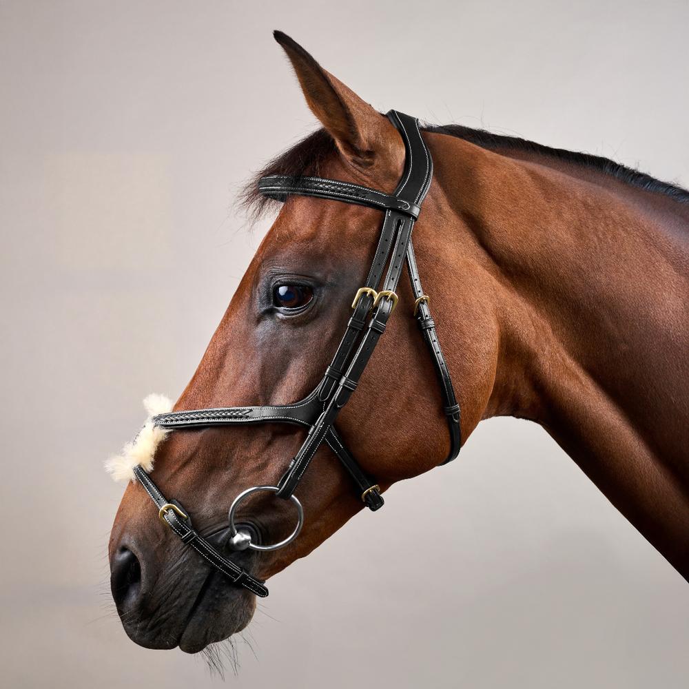 Geflochtene Lederdetails kombiniert mit höchstem Komfort und Kontrolle – Trense mit geflochtenem mexikanischem Reithalfter.