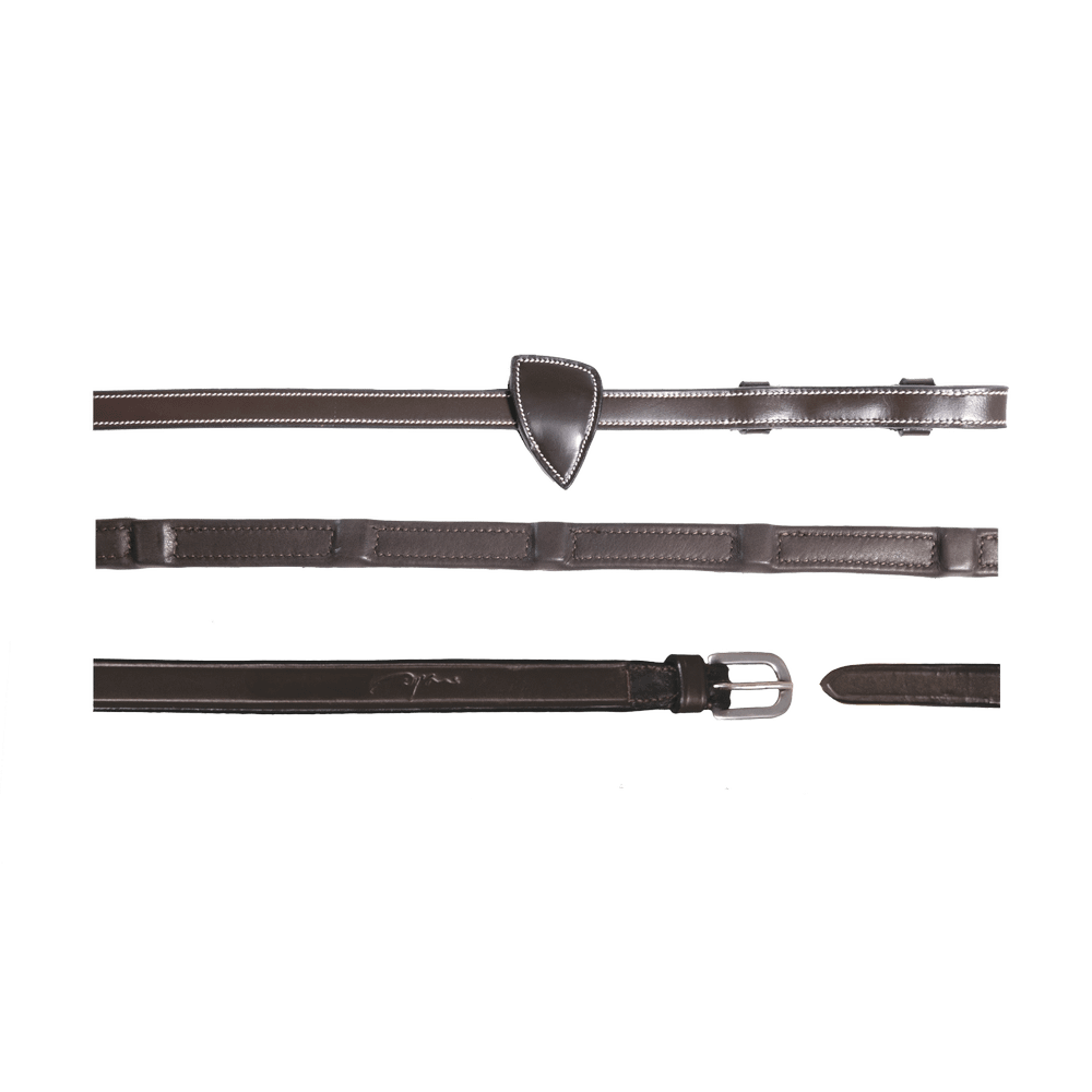 Die Zügel gehören zur Working Collection, was bedeutet, dass die Nähte in Cremefarbe gehalten sind. Die Schnallen bestehen aus Edelstahl. Erhältlich in Braun und Schwarz.