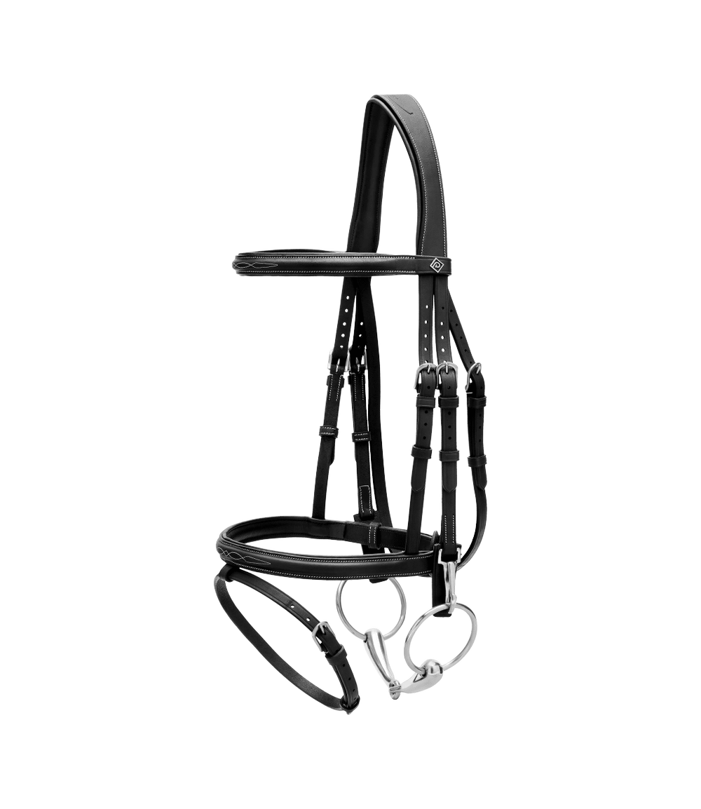 Die Trense verfügt über einen abnehmbaren 1/2"-Sperrriemen. Die Schnallen am Backenstück befinden sich unterhalb der Augenhöhe, um das Sichtfeld des Pferdes nicht zu beeinträchtigen.