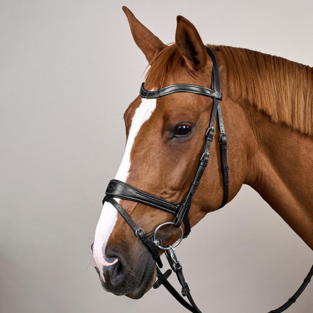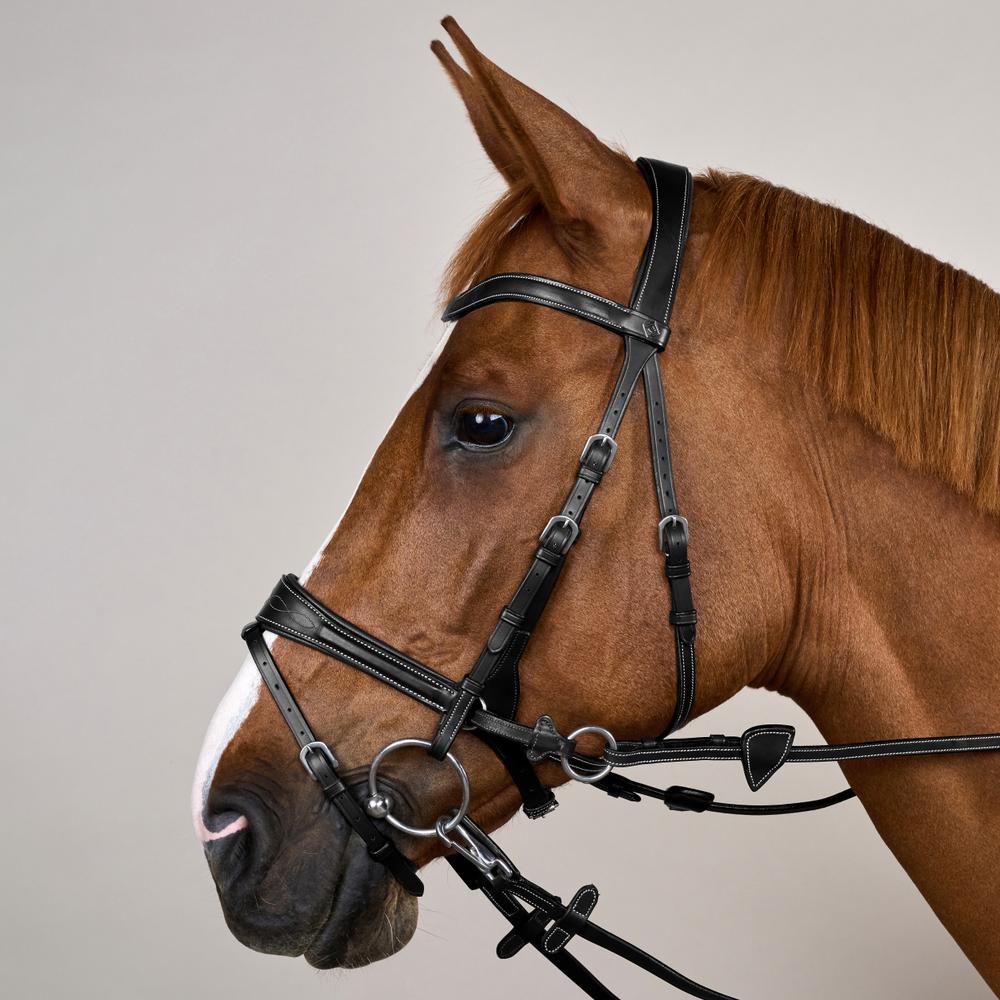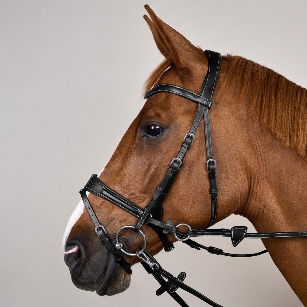 Einführung der Motion Trense aus der Arbeitskollektion in Schwarz Full, wo fortschrittliches Design auf tägliche Haltbarkeit trifft. Diese Trense ist für Reiter konzipiert, die sowohl Flexibilität als auch Widerstandsfähigkeit von ihrem Zaumzeug verlangen und dabei optimale Leistung und Komfort für ihre Pferde sicherstellen.