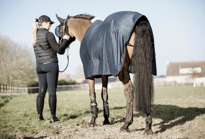An einem wolkigen Tag ist die Wetter-App auf Ihrem Telefon Ihr bester Freund. Es ist wichtig, die Situation genau im Auge zu behalten, um festzustellen, was Ihr Pferd braucht. Wenn Ihr Pferd auf der Weide steht, kann es Fliegenschutz gebrauchen. Nutzen Sie die leichte Fliegendecke Mesh, um vor Insekten zu schützen. Wenn Ihr Pferd eingestallt und geschoren ist, versuchen Sie unsere Stalldecke 0g. Diese ist mit künstlichem Kaninchenfell ausgekleidet, das Scheuern verhindert und sich auf geschorenem Fell extra weich anfühlt.