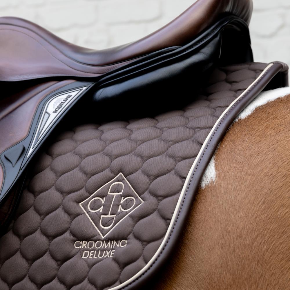 The Grooming Deluxe Saddle Pad features an eye-catching yet subtle design that combines both luxury and practicality. It’s perfect for horse owners who want a refined look without compromising on comfort and durability. This pad not only enhances your horse’s appearance but also ensures they stay comfortable and dry, even during intense riding sessions. The elegant Grooming Deluxe logo complements the pad’s overall design, adding a touch of luxury without being overpowering, perfect for riders who appreciate subtle sophistication.