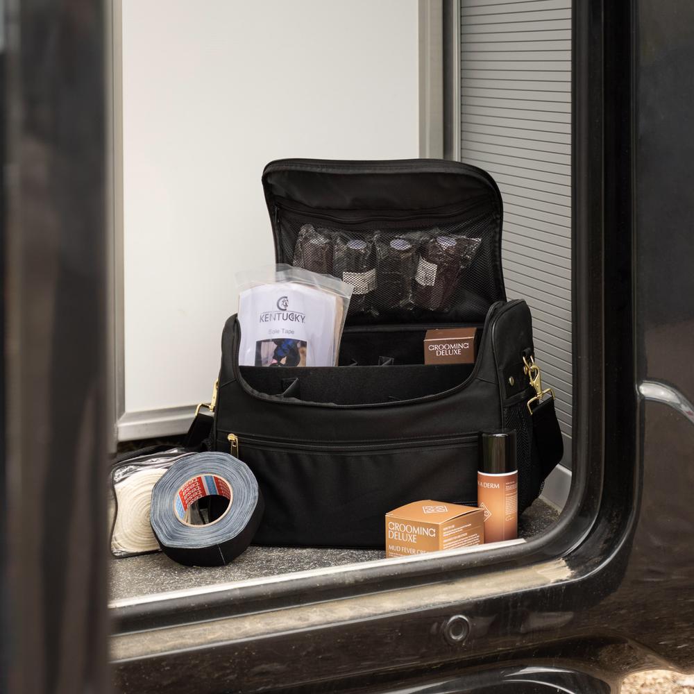 When we're traveling with our horses, we know that even the smallest injury can happen at any time. That's why the Grooming Deluxe First Aid Kit is always with us, no matter where the road takes us.