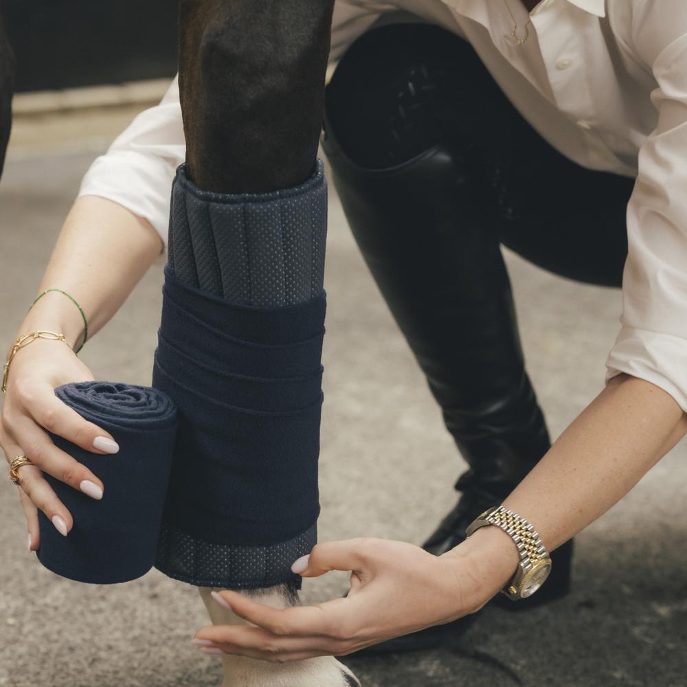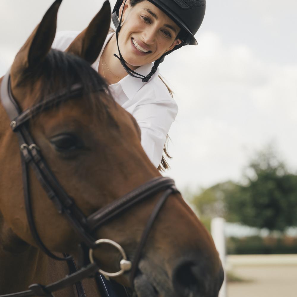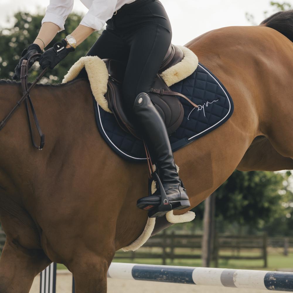 Découvre le Training Look sélectionné par Jessica Springsteen et recrée sa tenue d’entraînement de saut d’obstacles en un clic. Ce set réunit la Sheepskin Stud Girth, le Skin Friendly Saddle Pad Jumping, les Polar Fleece Bandages + Working Bandages Pads Absorb, ainsi que la touche finale avec la Plaited Flash Noseband Bridle, les Web Reins et le Double Jointed Loose Ring Snaffle – dans une harmonie brun & navy.