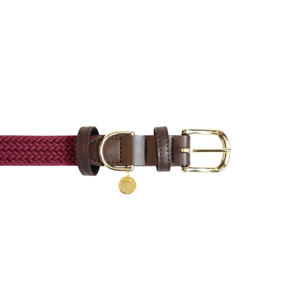 Deze hondenhalsband is gemaakt van artificieel leder (100% diervriendelijk) en heeft een nylon gevlochten design. De halsband heeft een goudkleurige ring waar je onze gelijkaardige gevlochten nylon hondenriem kan aan vastmaken! Het kleine bedeltje met Kentucky Dogwear logo kan worden gegraveerd op de andere zijde.