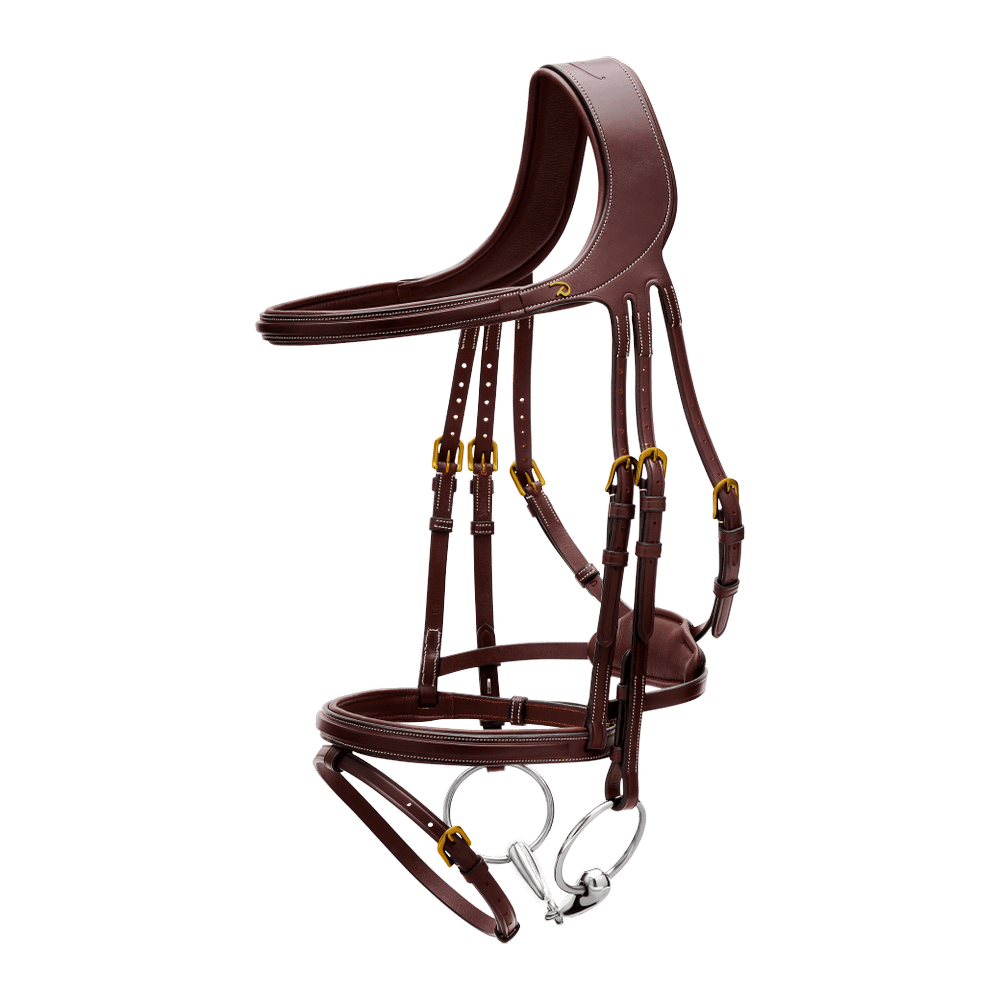 Het Difference Hoofdstel is speciaal ontwikkeld voor paarden met drukpunten aan de basis van de oren en op de eerste nekwervel (C1). De éénstukskopriem en frontriem verdelen de druk gelijkmatiger, terwijl de keelriem, verbonden met de neusriem, zorgt voor stabiliteit en ongewenste druk voorkomt. Door de kopriem verder naar achteren te plaatsen, vermindert dit hoofdstel spanning achter de oren, waardoor het paard meer ontspanning en comfort ervaart.
