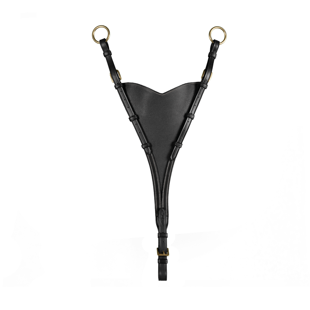 Aanpasbare full martingaalvork gemaakt uit zacht Dy'on leer.Het wordt bevestigd aan een yoke of borsttuig door middel van een rolgesp.