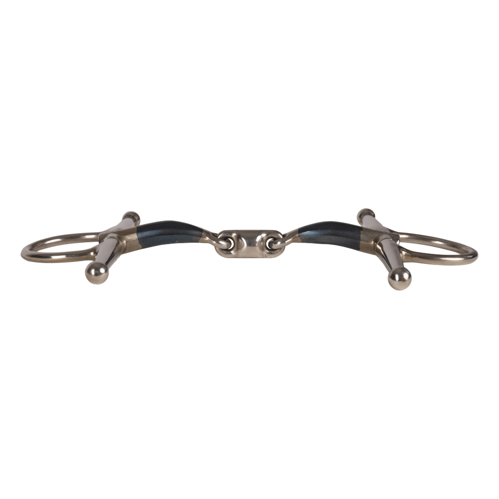 Het dubbelgebroken mondstuk verdeelt de druk gelijkmatig over de tong en lagen, voorkomt het notenkrakereffect en geeft een zachte, stabiele aanleuning. Paarden die baat hebben bij een gelijkmatige druk en een bit dat de vorm van de mond volgt, reageren vaak bijzonder goed op dit ontwerp. Het is ook een uitstekende keuze voor paarden met een laag gehemelte, omdat de dubbelgebroken constructie de opwaartse beweging naar het gehemelte vermindert en extra comfort biedt.