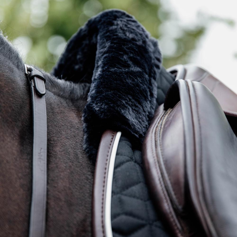 Dankzij de artificiële wol op de binnenzijde van de zadeldoek Skin Friendly Dressage en ter hoogte van de schoft biedt deze vernieuwende zadeldoek niets dan comfort.