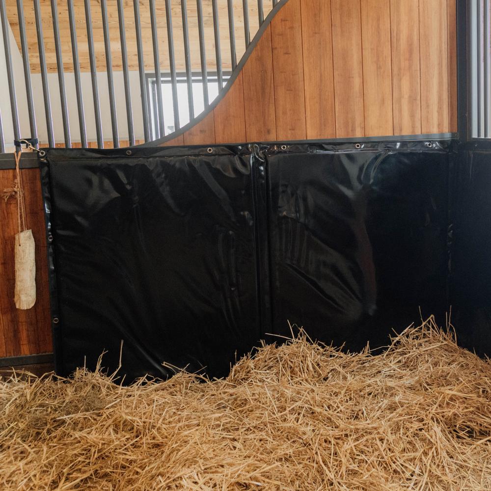 Zoals u ziet op de foto's kan de Kick Pad op verschillende plaatsen gebruikt worden, zoals in de stal of op het transport. Door middel van een reeks versterkte ringen kan de Kick Pad op elke gewenste plaats bevestigd worden. Wanneer deelgenomen wordt aan meerdaagse wedstrijden waarbij de paarden terplaatse moeten gestald worden, kan de Kick Pad, vanwege zijn lichte gewicht, zonder enige moeite meegenomen worden en op verplaatsing dezelfde bescherming bieden als thuis.