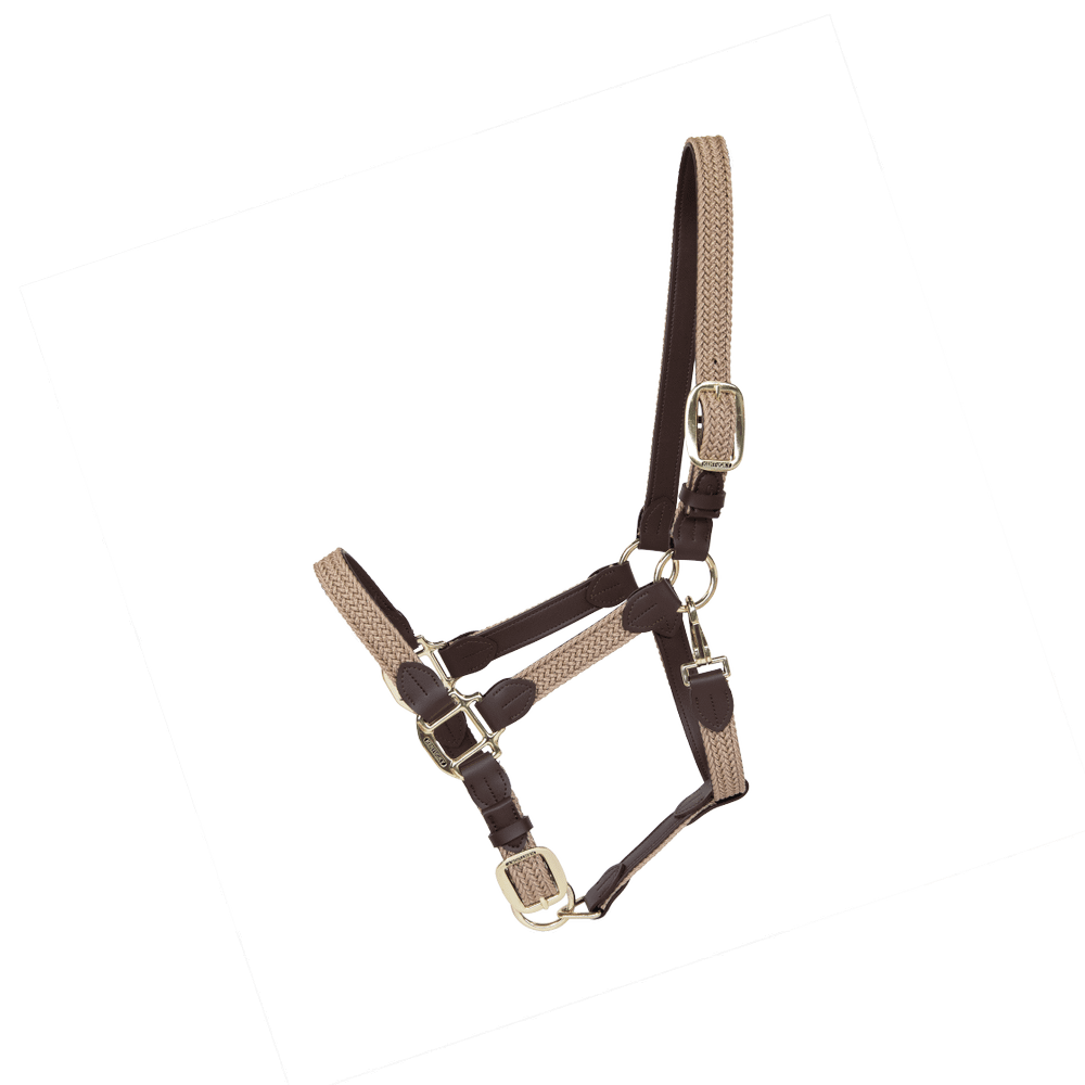De Plaited Nylon Halter is gemaakt van artificieel leder (100% diervriendelijk) en heeft een nylon gevlochten design. Alle sluitingen zijn goudkleurig en passen zo perfect bij onze presentatielijnen.