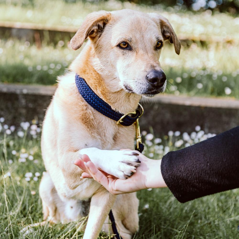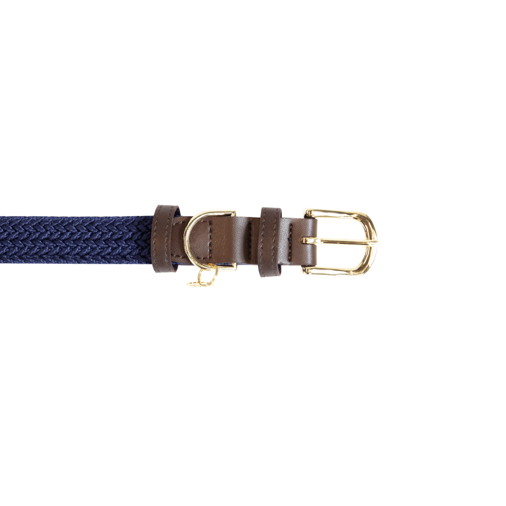 Deze hondenhalsband is gemaakt van artificieel leder (100% diervriendelijk) en heeft een nylon gevlochten design. De halsband heeft een goudkleurige ring waar je onze gelijkaardige gevlochten nylon hondenriem kan aan vastmaken! Het kleine bedeltje met Kentucky Dogwear logo kan worden gegraveerd op de andere zijde.
