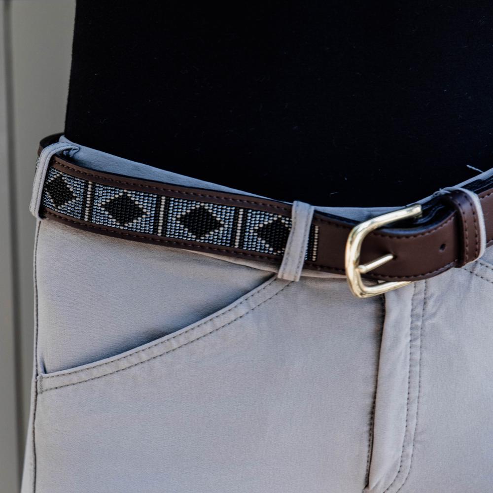 De riem kan niet in de wasmachine. Om schade aan de parels te voorkopen, reinig je deze best met een vochtige doek. Het artificieel leder kan met onze tack cleaner schoongemaakt worden.