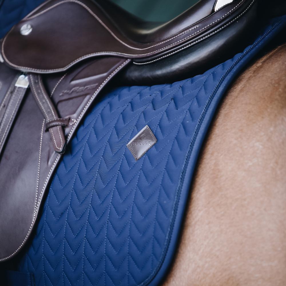 Onze veelzijdigheid zadeldoek Fishbone heeft de ideale vorm voor jumping, zorgt voor een schokabsorberend effect tussen de rug van het paard en het zadel en voorkomt wrijving. Dankzij de goede pasvorm is er geen nood aan lus vooraan om het dekje aan het zadel vast te maken, wel een nylon riem voor de singel.