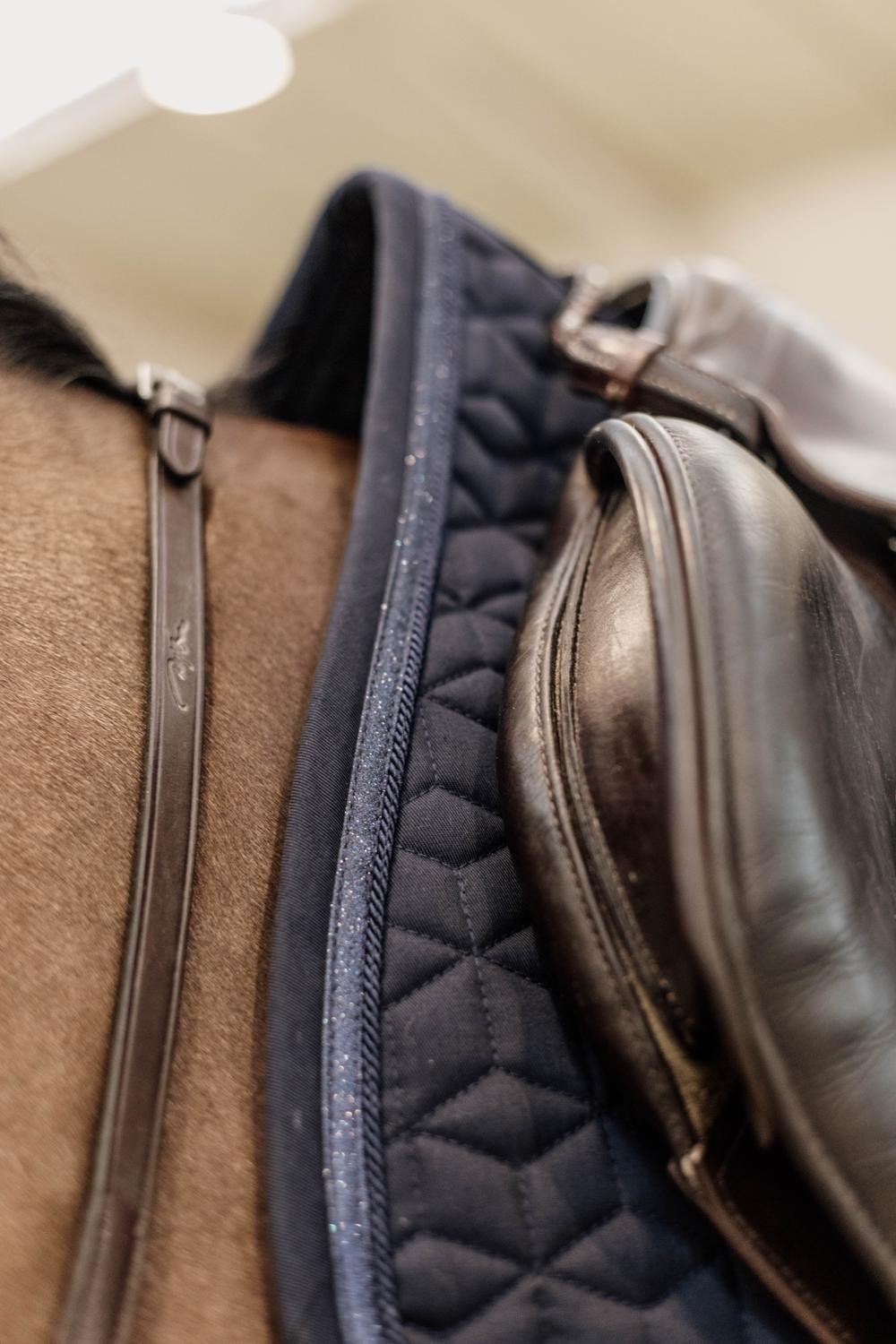 Onze Glitter Stone zadeldoek is gevormd jumping en zorgt voor een uitstekende schokabsorbering en bescherming tegen wrijving tussen de rug van uw paard en het zadel. Het heeft geen vervelende riemen om aan het zadel te bevestigen, enkel een nylon riempje voor de singel.