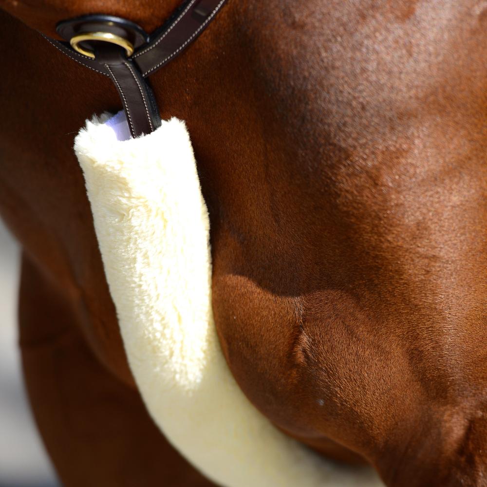 De jachtmartingaal cover van artificiële wol (100% diervriendelijk) beschermt de borst van het paard tegen het wrijven en schuren van de jachtmartingaal. De jachtmartingaal cover is extreem zacht en is gemakkelijk aan en af te doen dankzij de klittenbandsluiting. Ideaal voor paarden met een gevoelige huid. De jachtmartingaal cover beschermt ook het leder tegen zweet, vuil en hoefmarkeringen tijdens het springen en zorgt voor een stijlvolle look. Machine wasbaar op 30°, geen droger.