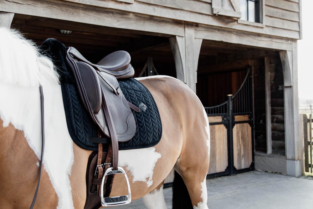 Het schoft- en ruggedeelte zijn gevoerd met vegan wol. Dit zorgt voor een uitstekende demping en voorkomt schuren. Voor paarden met een gevoelige huid is dit uiterst comfortabel. De buitenkant van het dekje is gemaakt van een zachte velvet stof en heeft een visgraat quilting.