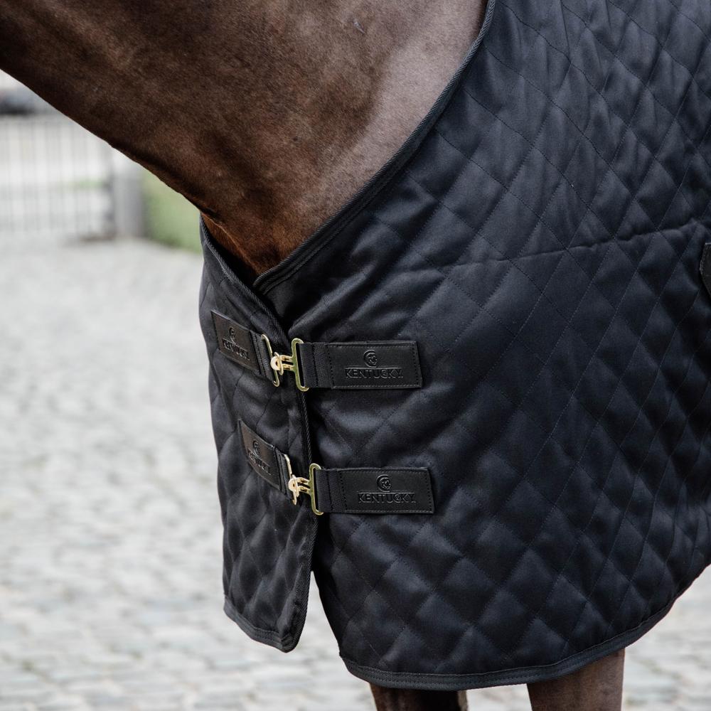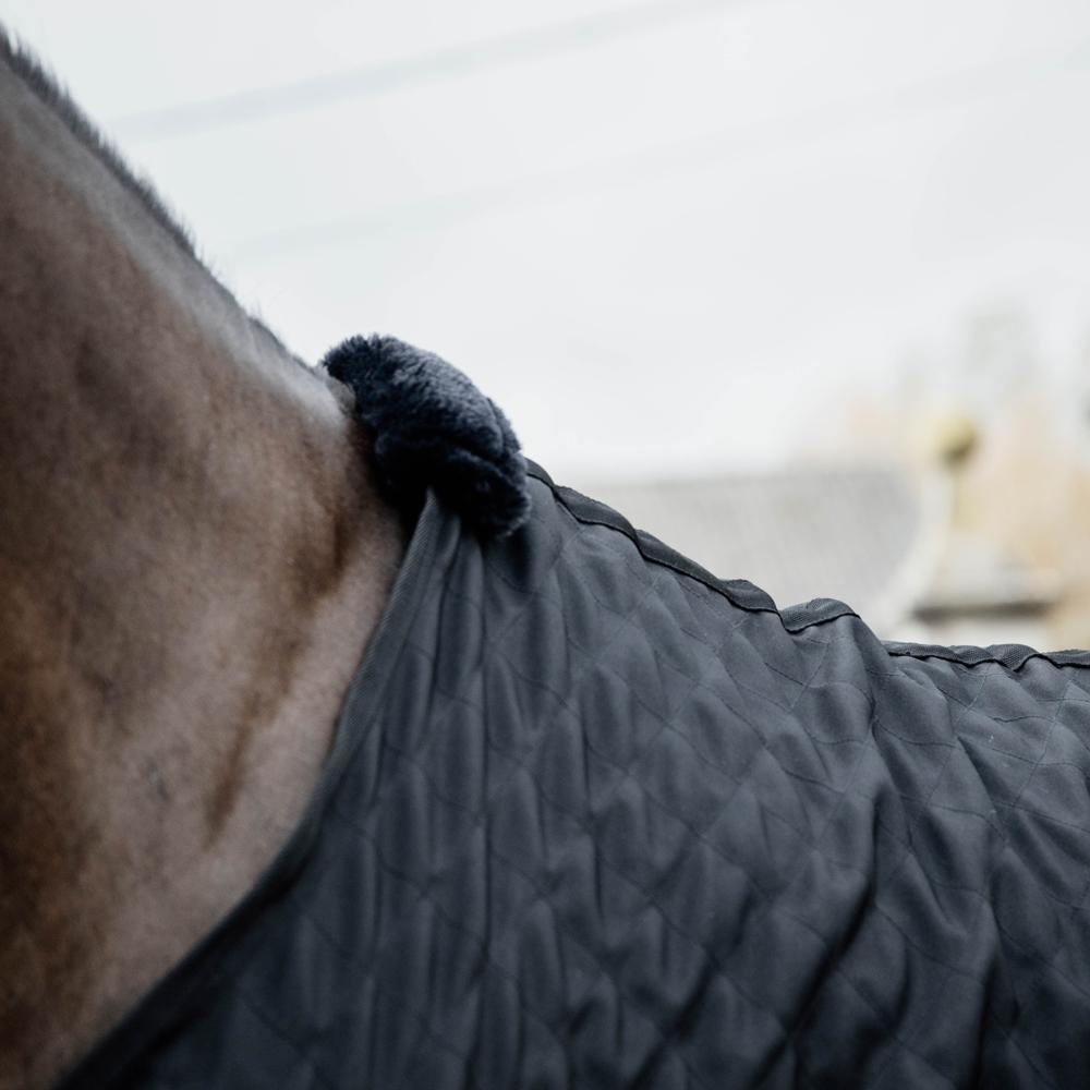De buitenstof is gewatteerd in een vierkantpatroon en gemaakt van 600D polyester, hierdoor is het resistent tegen scheuren. Het deken bevat geen vulling maar de artificiële konijnenvacht creëert kleine luchtzakjes die de lichaamswarmte van het paard vasthouden. Dankzij de artificiële konijnenvacht blijft het deken ook mooi op het paard liggen, zelfs na het rollen. Bovendien voorkomt het schuurplekken en zorgt het voor een glanzende vacht.