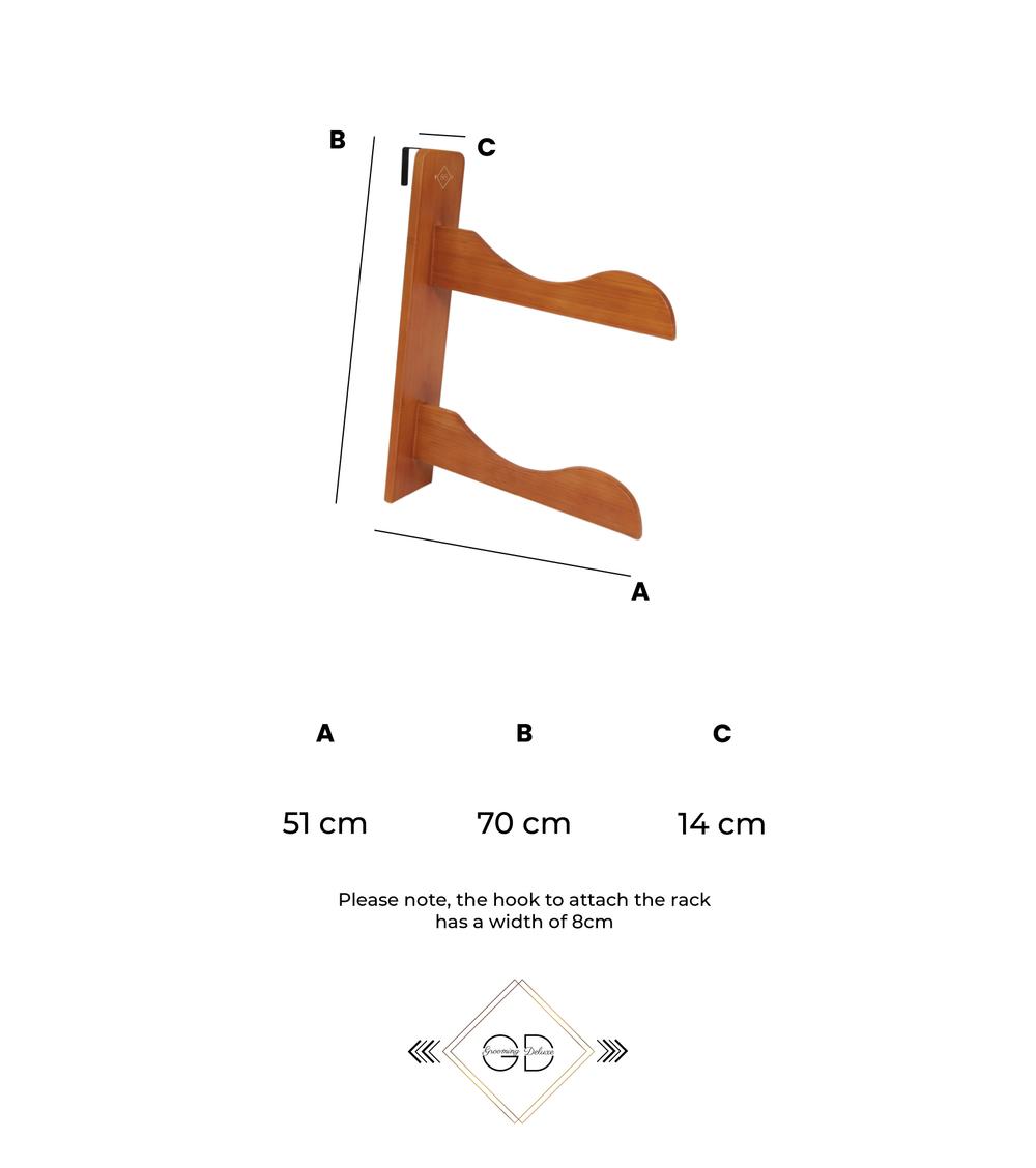 Haal de beste uitrusting voor uw zadelkamer op stal met dit zadelrek! Het is vervaardigd uit bamboe, waardoor het extra stevig en makkelijk te reinigen is. Het zadelrek biedt ruimte om 2 zadels of zadeldoeken op te hangen. Het is heel eenvoudig overal op te hangen dankzij de grote haak aan de achterkant. Het goudkleurige Grooming Deluxe logo geeft dit rek een klassevolle uitstraling. Combineer stijl en organisatie voor al uw producten met dit mooi zadelrek!