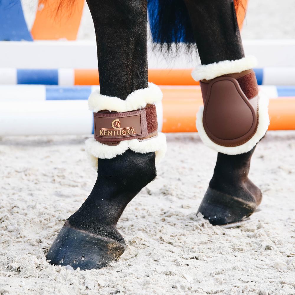 De Kentucky Kogelbeschermers Young Horse Wol zijn de ideale keuze om deel te nemen aan proeven voor jonge paarden (conform met de FEI-reglementering) alsook voor algemeen gebruik. Ze bieden ultieme bescherming en met de artificiële wollen voering (100% diervriendelijk) bieden ze ook een aangenaam gevoel tegen de huid. De kogelbeschermer heeft een anatomische vormgeving waardoor deze een comfortabele en goede pasvorm biedt. De sterke huls bestaat uit extreem licht maar sterk TPU-materiaal dat helpt te beschermen tegen impact zonder in te boeten aan stijl. De PVC lederen sectie op het klittenband is gemakkelijk schoon te maken en is uitgerust met ons in het oog springende logo. De klittenbandsluiting biedt een verstelbare pasvorm en vervolledigt deze begeerlijke beenbeschermer. De kogelbeschermer is net als al onze andere producten wasmachine bestendig op 30°, geen droger. Kentucky Horsewear ontwikkelde een Boot Spray die alle TPU-beenbeschermers doet glanzen als nieuw! Zeer gemakkelijk en efficiënt!