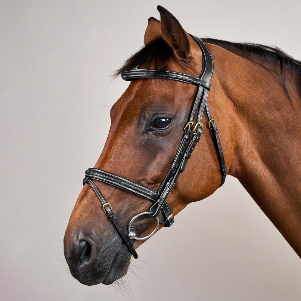 Gewoven leren details gecombineerd met ultiem comfort, Gewoven Hoofdstel met gecombineerde neusriem.