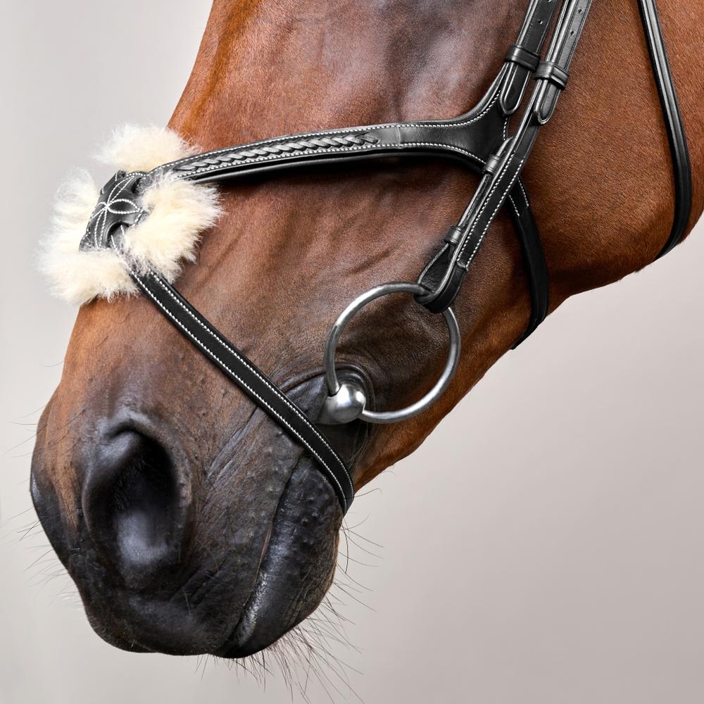 Het hoofdstel met gevlochten Mexicaanse neusriem heeft een minimalistisch ontwerp met een stijlvol design. Het beschikt over een Mexicaanse neusriem en beschermende pads op elke gesp om knellen van de huid van je paard te voorkomen. Het S-vormige kopstuk zorgt ervoor dat de oren van het paard vrij kunnen bewegen. De wanggespen bevinden zich onder ooghoogte, zodat het gezichtsveld van het paard vrij blijft.
