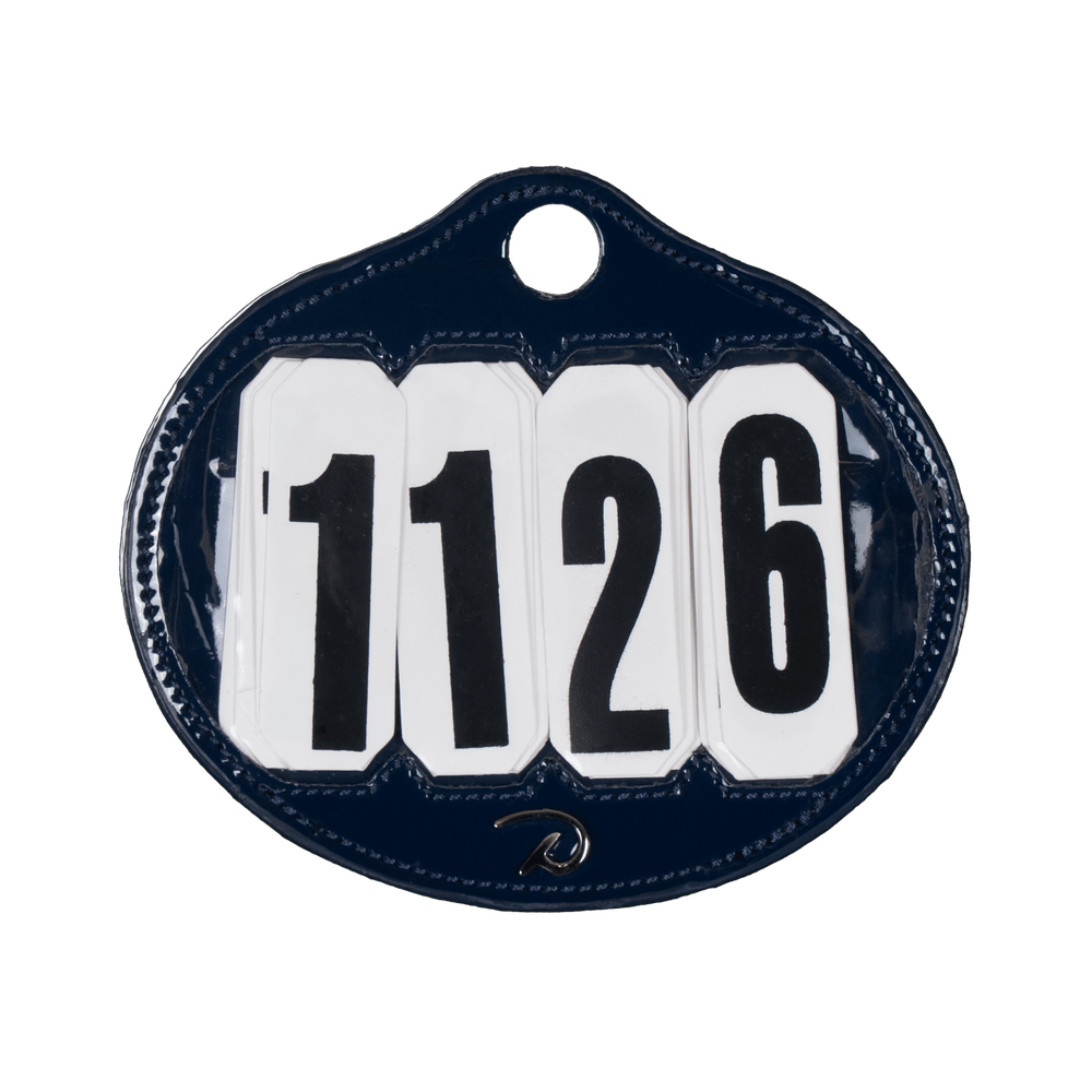 4-cijferige nummerhouder in grijs lakleer die kan worden toegevoegd aan het Classic zadeldek met een drukknoopsysteem