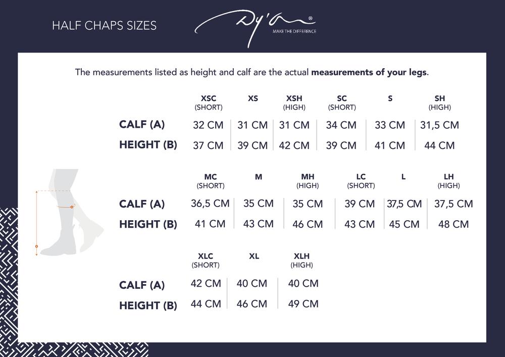 De bovenkant van de Half Chaps Classic Comfort Standaard is afgewerkt met een gouden Dy’on pin n aan de bovenkant. Deze chaps zijn verkrijgbaar in zwart en bruin.