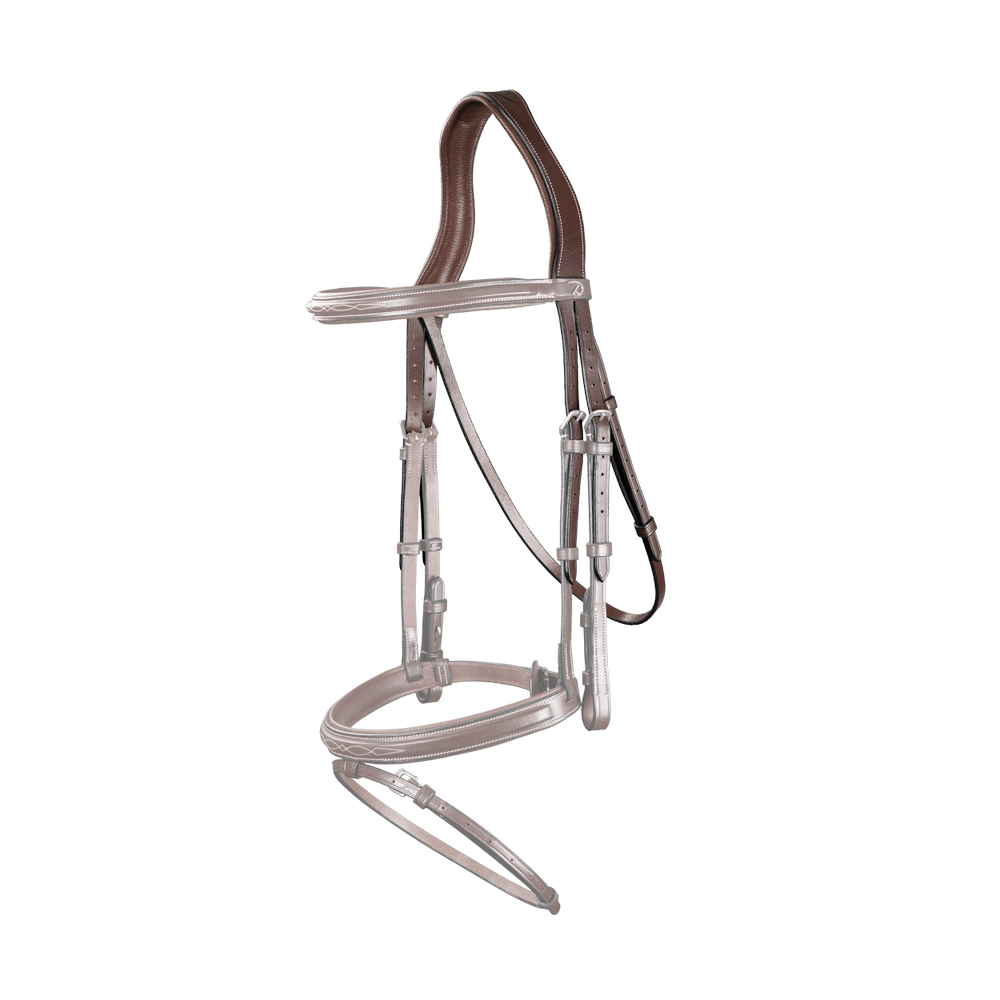 Soepel kopstuk S-vorm – de nieuwste Dy'on innovatie voor de hoofdstellen van de US Collectie . Dit nieuwe kopstuk in S-vorm is een verbetering van het model dat je al kent. Het verschil? De S-vorm is geaccentueerd en de frontriem zit lager op het kopstuk zodat deze niet tegen de basis van het oor aanligt - een van de gevoelige plekken op het hoofd van je paard.Het accentueren van de S-vorm maakt het ook mogelijk om de contour van de basis van het oor te volgen zonder er druk op uit te oefenen.