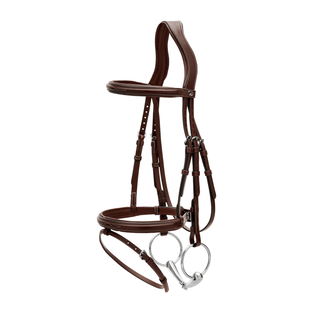 Dit klassieke hoofdstel met gecombineerde neusriem biedt de perfecte balans tussen veelzijdigheid, elegantie en comfort. Het tijdloze ontwerp zorgt voor een verfijnde uitstraling, zowel in de wedstrijdring als tijdens de dagelijkse training. Met anatomisch comfort als prioriteit verdeelt de zachte vulling en het zorgvuldig gevormde kopstuk de druk gelijkmatig, wat het welzijn van het paard bevordert.