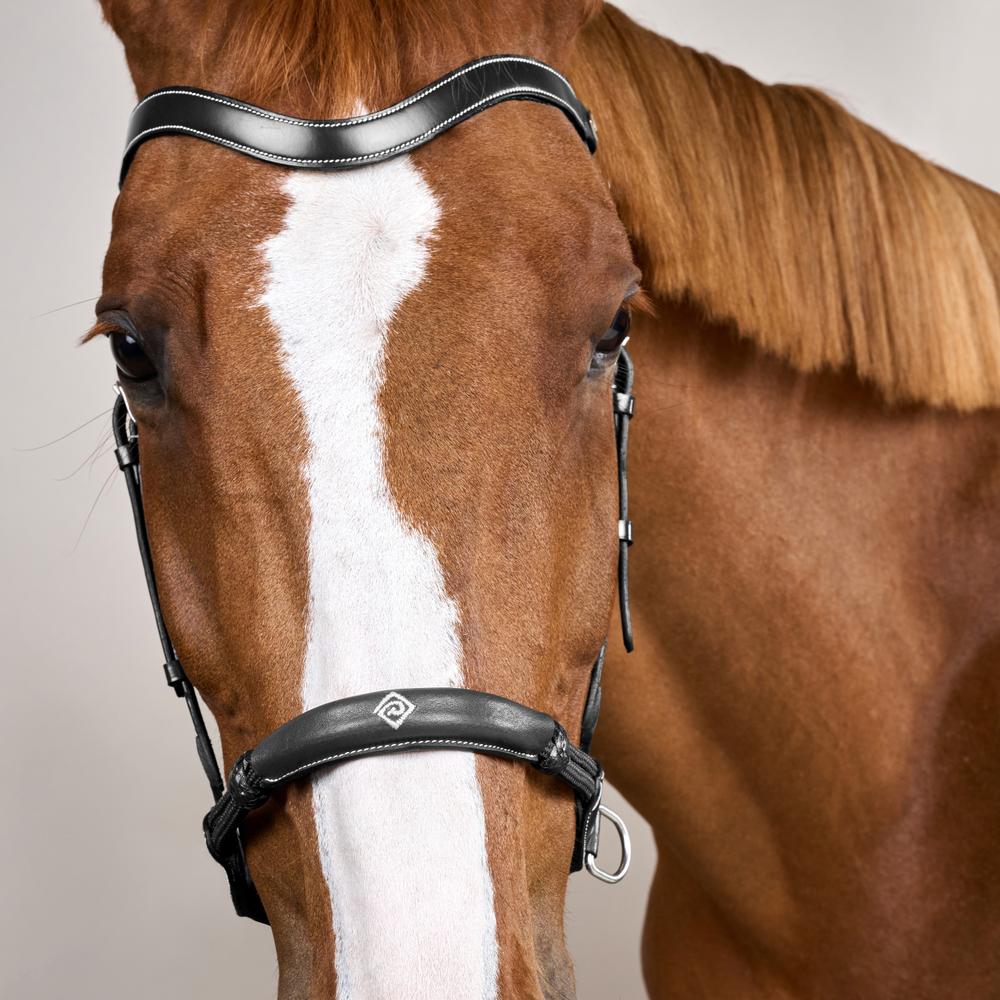 Met een anatomisch kopstuk en een extra zachte frontriem, geeft dit hoofdstel prioriteit aan het comfort van de infraorbitale foramina (kaakzenuwgangen) van je paard.