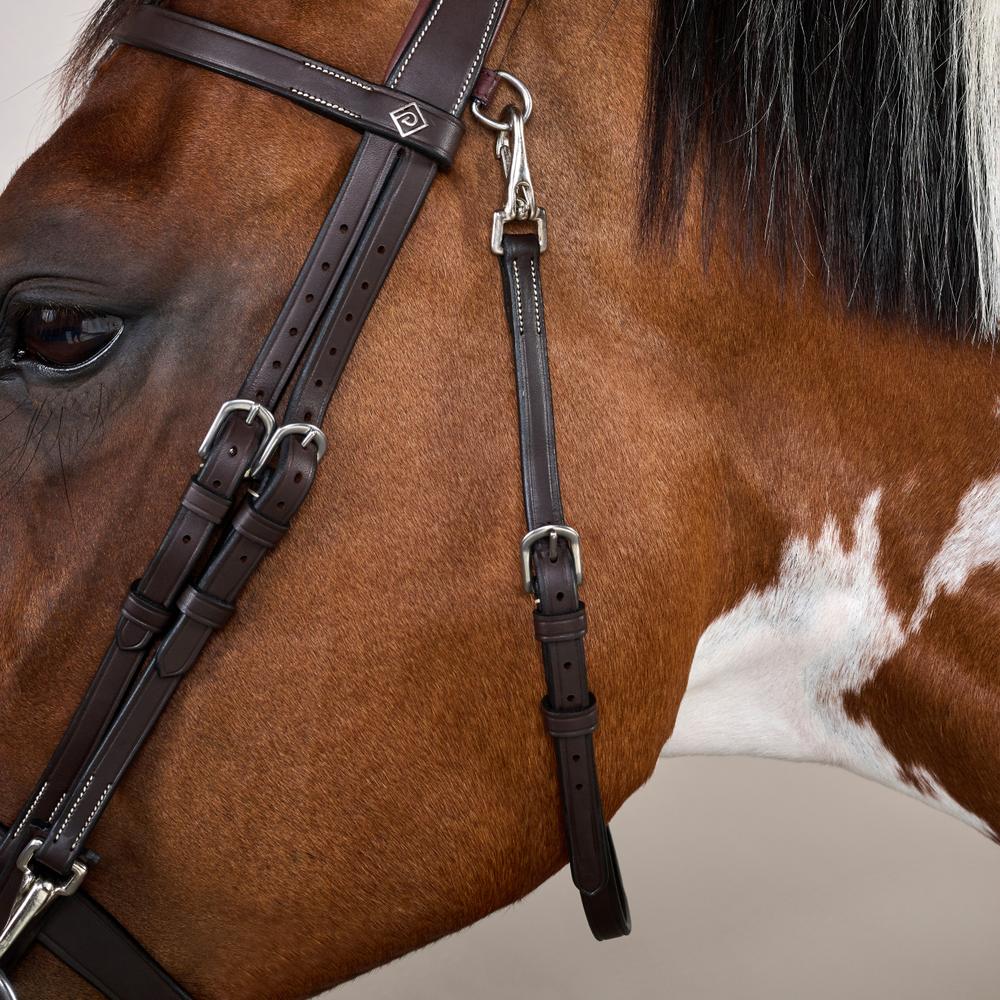Ideaal voor drukke dagen in de stal. Of je nu dressuur traint, een sprongetje maakt of een buitenrit doet, dit hoofdstel past zich aan. Het platte leder geeft een strakke, sobere look, terwijl de snelsluitingen je werk sneller en makkelijker maken—perfect voor professionals, grooms of fanatieke ruiters.