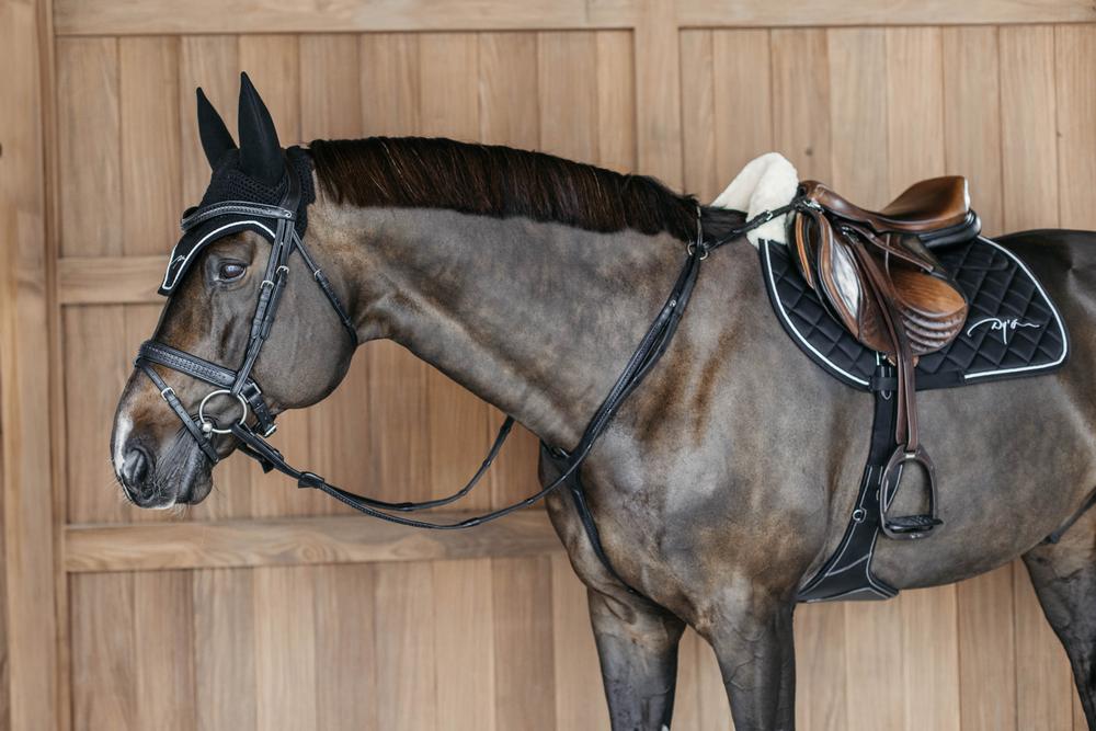 De perfecte combinatie van stijl en functionaliteit, het Diamond Oornetje. Het beschermt de oren van het paard tegen vliegen tijdens het rijden en voorkomt dat het paard wordt afgeleid. Perfect voor wedstrijden of dagelijkse training.