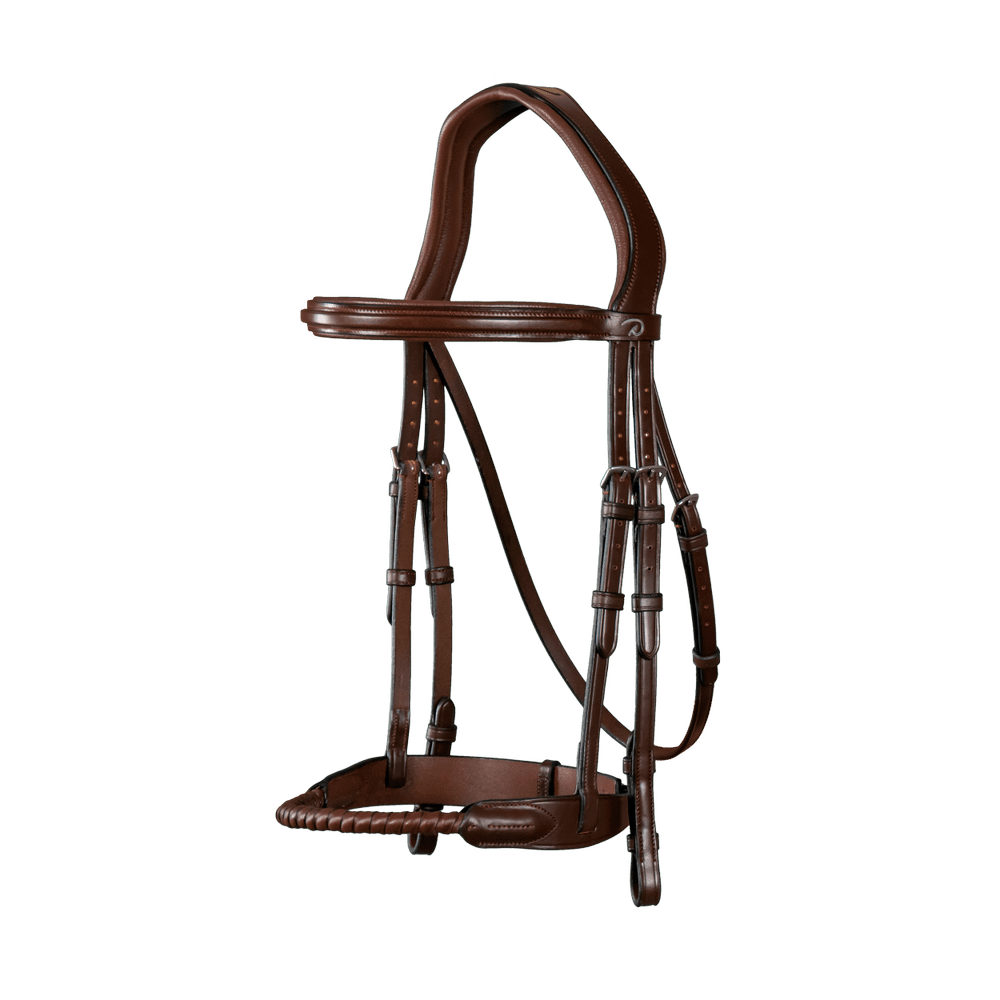 Productbeschrijving: Het hoofdstel met lederen overdekte touwneusriem is ontworpen om superieure controle en uitzonderlijk comfort te bieden, waardoor het een ideale keuze is voor zowel dagelijkse training als competitief rijden. Gemaakt van hoogwaardig leer, zorgt dit hoofdstel voor duurzaamheid en een verfijnde, gepolijste uitstraling die in elke omgeving opvalt. Het premium leer biedt een luxueus gevoel en een verfijnde look die elk ruiterensemble verbetert.