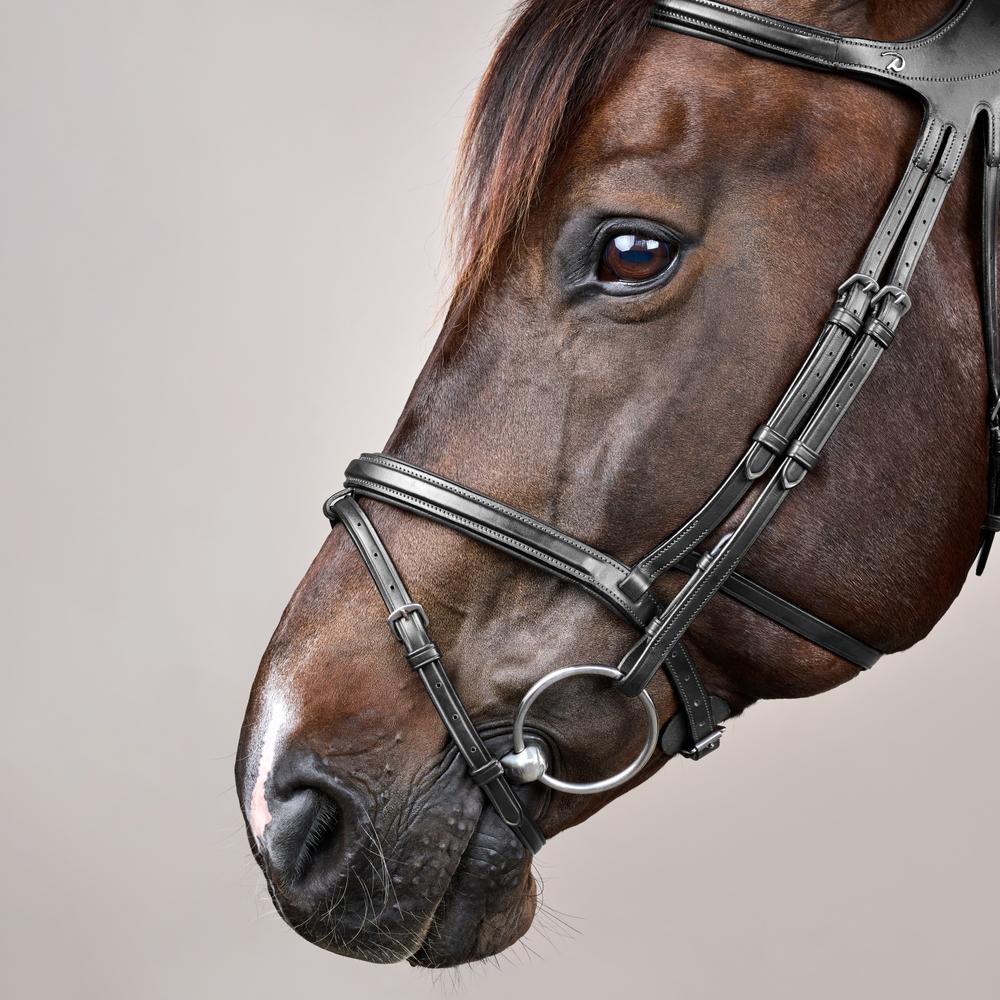 Het Difference Hoofdstel is speciaal ontwikkeld voor paarden met drukpunten aan de basis van de oren en op de eerste nekwervel (C1). De éénstukskopriem en frontriem verdelen de druk gelijkmatiger, terwijl de keelriem, verbonden met de neusriem, zorgt voor stabiliteit en ongewenste druk voorkomt. Door de kopriem verder naar achteren te plaatsen, vermindert dit hoofdstel spanning achter de oren, waardoor het paard meer ontspanning en comfort ervaart.