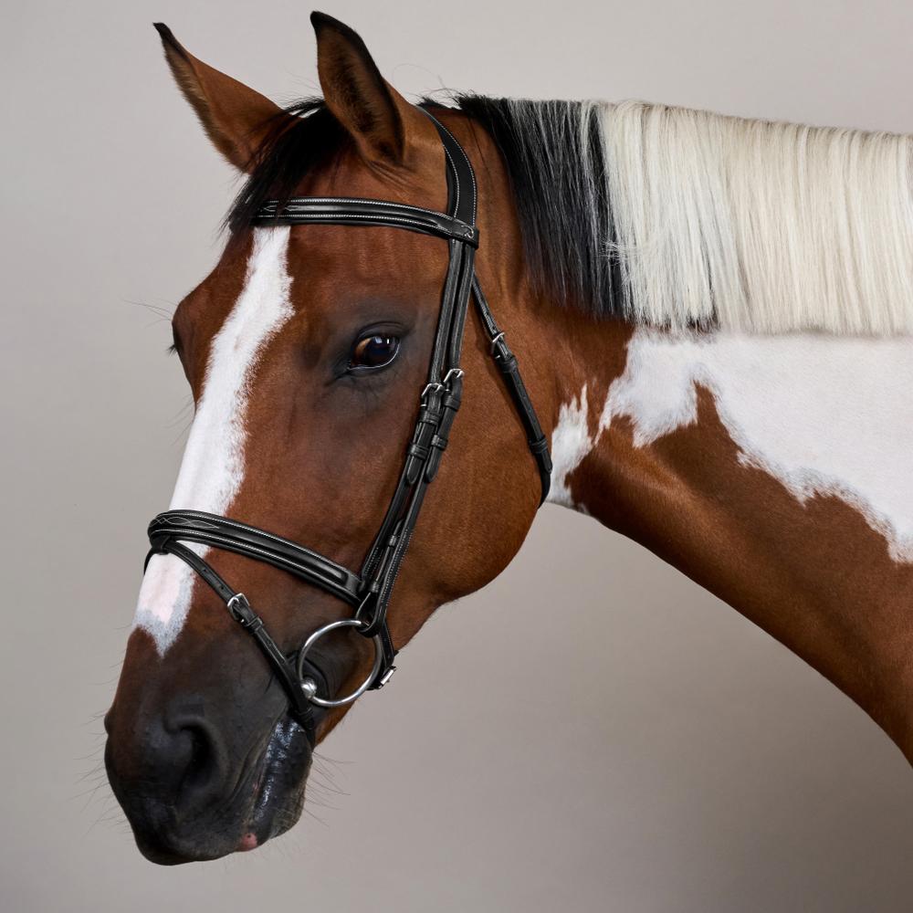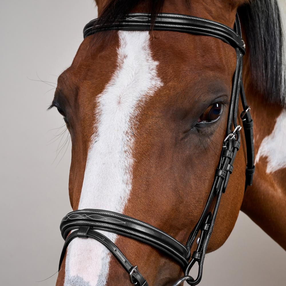 Dit klassieke hoofdstel met gecombineerde neusriem biedt de perfecte balans tussen veelzijdigheid, elegantie en comfort. Het tijdloze ontwerp zorgt voor een verfijnde uitstraling, zowel in de wedstrijdring als tijdens de dagelijkse training. Met anatomisch comfort als prioriteit verdeelt de zachte vulling en het zorgvuldig gevormde kopstuk de druk gelijkmatig, wat het welzijn van het paard bevordert.