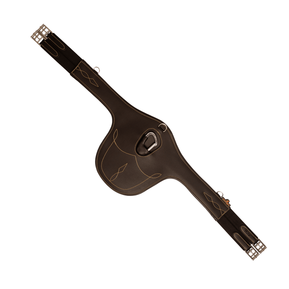 Neben dem breiten Stollenschutz ist der Stollengurt anatomisch geformt, bietet Komfort und Sicherheit beim Springen und begrenzt dabei das Risiko von Verletzungen durch Hufeisen oder Stollen. Speziell geformt, um der natürlichen Bewegung des Pferdes zu folgen, verschafft er den Schultern und Ellbogen des Pferdes Freiheit. Der Gurt hat ein schützendes Inneres aus EVA, Elastikeinsätze an beiden Enden, um Druck gleichmäßig zu verteilen, drei D-Ringe, um (Hilfs-)Zügel anzubringen sowie eine Schnalle, um ein Martingal am Gurt zu befestigen. Die Gummizüge sind sehr stabil und bleiben es auch, da es insgesamt drei sind und diese doppelt gemacht sind. Der Stollengurt ist aus Kunstleder gefertigt, das keinen Schmutz, Schweiß oder Wasser aufnimmt und daher sehr beständig ist. Ebenfalls ändert es nicht die Farbe und ist nicht leicht zu beschädigen.
