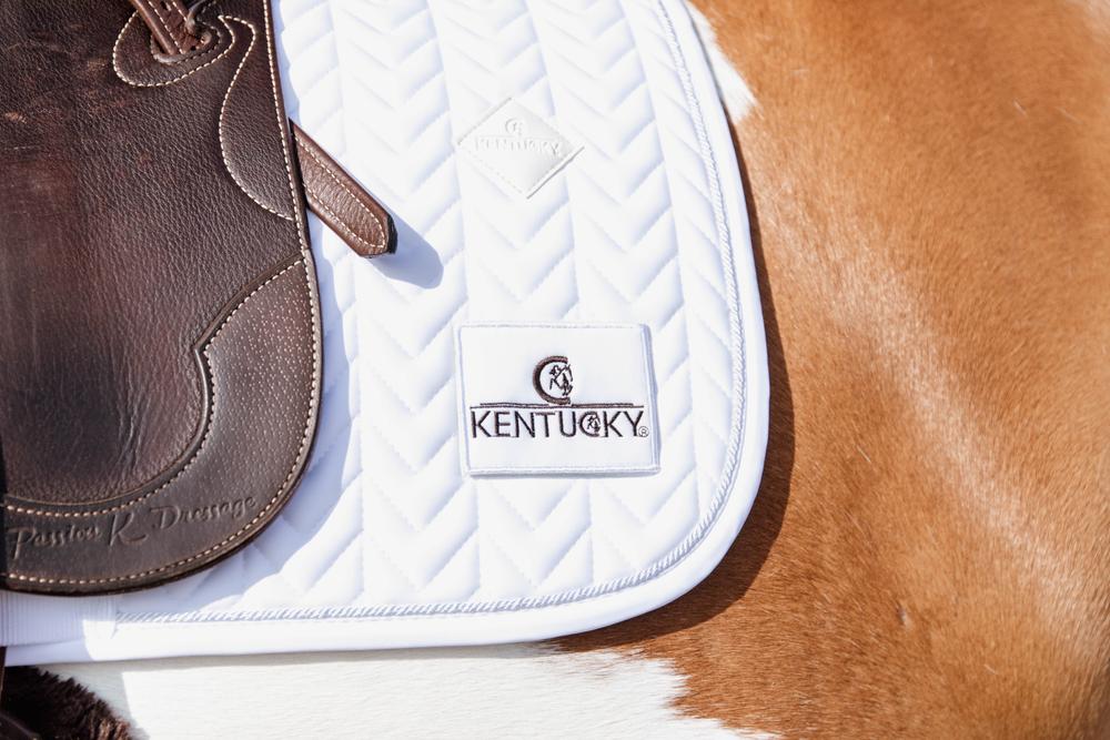 Diese Schabracke mit Fischgrät-Muster besteht aus einem atmungsaktiven Material (43% Nylon, 43% Polyester und 14% Elasthan) und eignet sich daher perfekt für Turniere oder das Training zu Hause.