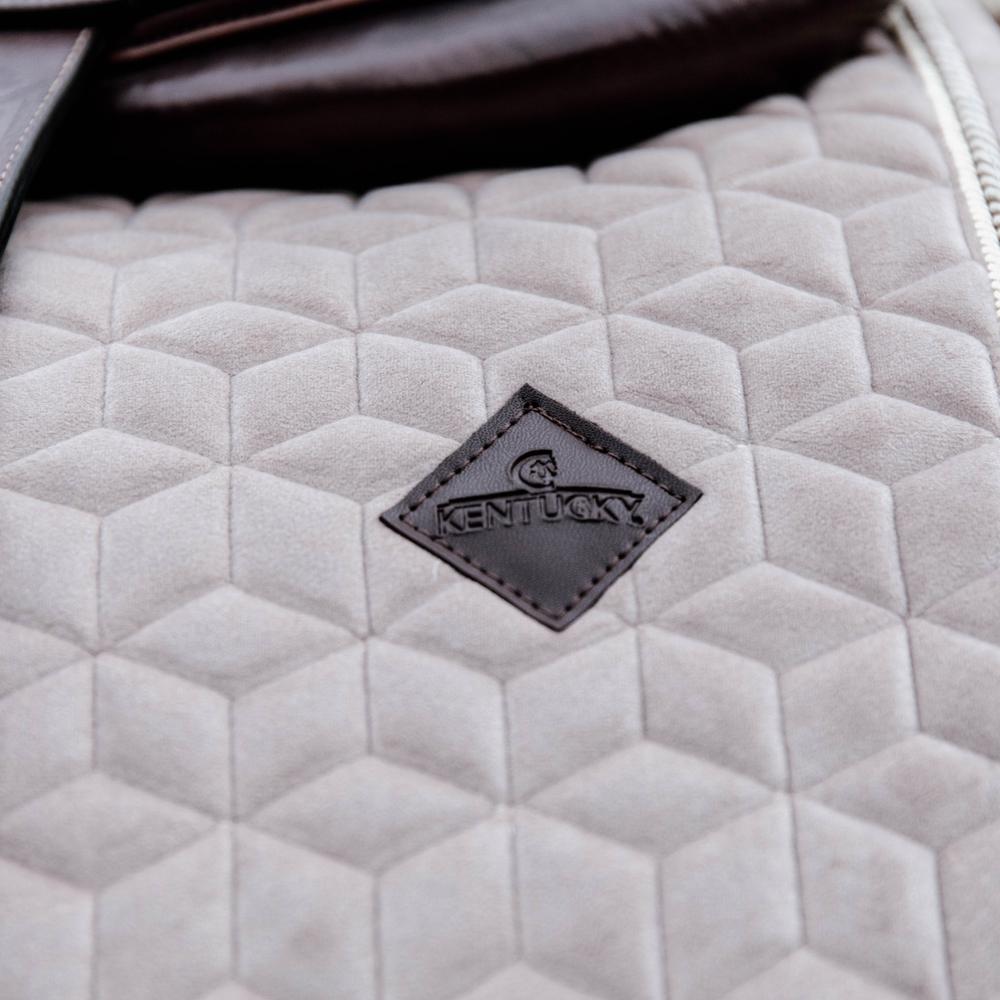 Die Samtschabracke ist für den Springsattel designed und bietet hervorragende Polsterung zwischen dem Rücken des Pferdes und genau diesem. Die Schabracke hat keine lästigen Schlaufen zur Befestigung am Sattel, sondern nur einen Nylonriemen für den Gurt.