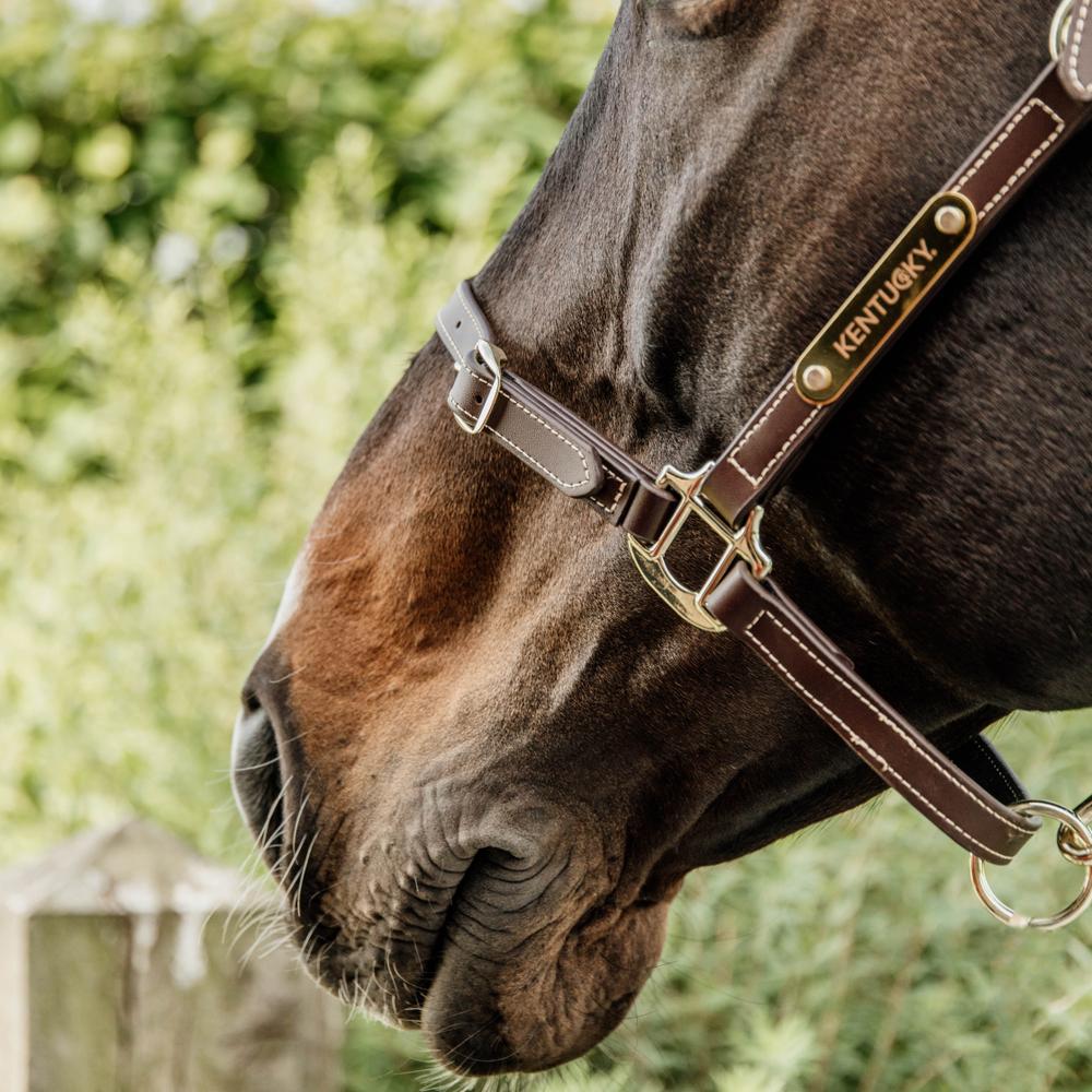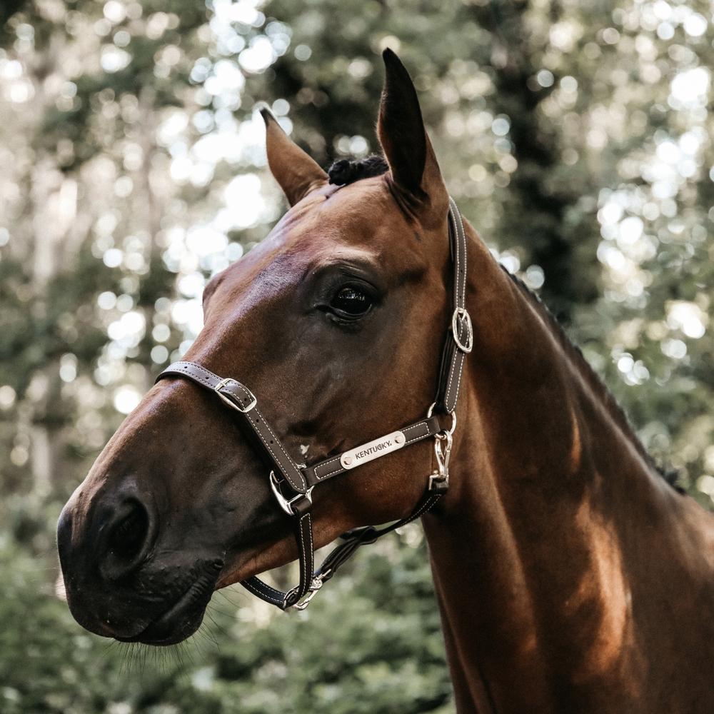 Alle Teile sind aus Kunstleder, so dass das Halfter sehr geschmeidig und pflegeleicht ist. Darüber hinaus ist das Kopfstück extra weich gepolstert und es gibt ein gravierbares Namensschild.