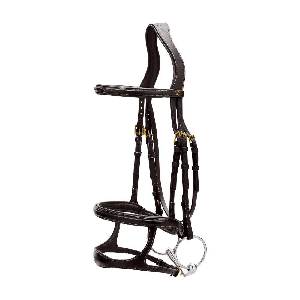 Entdecken Sie unvergleichliche Kontrolle und raffinierte Eleganz mit der Dy'on Doppel-Nasenriemen-Trense. Diese Trense ist sorgfältig entworfen, um verbesserte Stabilität und Präzision zu bieten, was sie zu einer idealen Wahl für Reiter macht, die überlegene Leistung und Stil suchen.