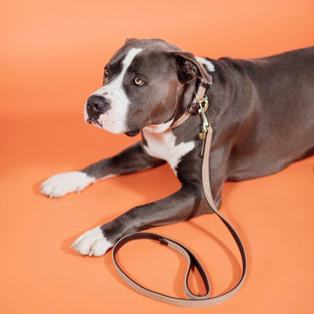 Die Leine Plaited Nylon Dog ist 120cm lang und ist aus demselben Material, wie das Halfter und das Hundehalsband aus der Plaited Nylon Kollektion für Hund. Der Haken und die Verschlüsse sind aus goldenen Beschlägen.