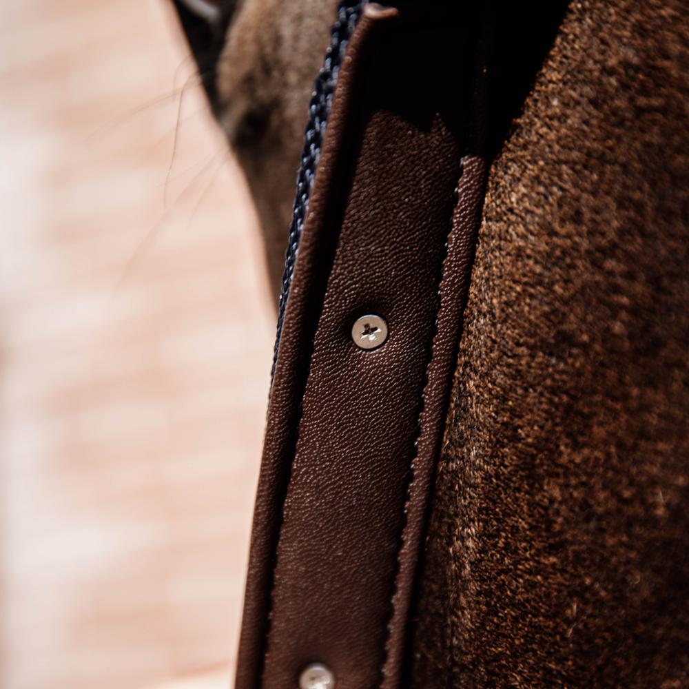Das anatomische Halfter aus Nylon ist aus unserem Kunstleder gefertigt. Ein Material, das stärker und haltbarer ist als echtes Leder. Kunstleder verändert weder die Farbe noch wird es durch Wasser brüchig. Das Halfter ist mit Nylon veredelt, dies macht es robuster und schafft einen schicken Look.